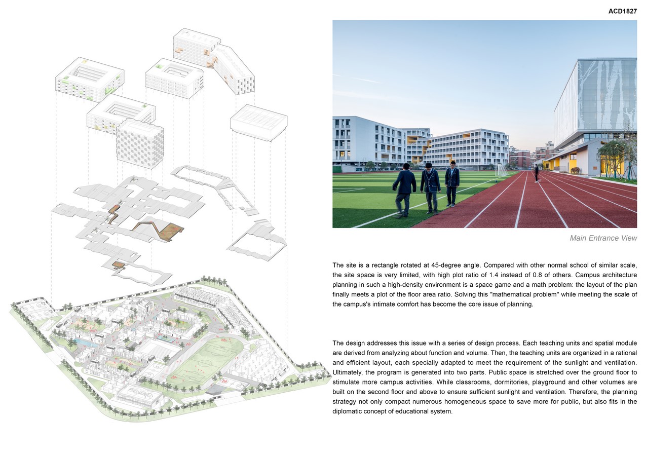 Yiwu Foreign Languages School is located in the main urban area of Yiwu, Zhejiang Province. The school, a branch of Hangzhou New Century Foreign Language School in Yiwu, consists of a primary school of 48 classes and a junior high school of 24 classes, now is under construction. As the first project of the client as returned overseas Chinese, it’s expected to be designed as a cosy and comfortable campus integrated with the international outlook and Yiwu-rooted culture.