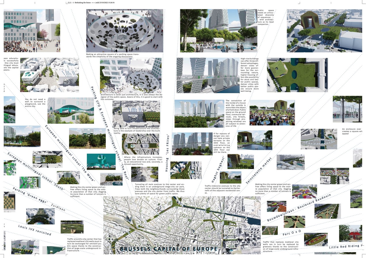 A 7 km long city ring will become one green axis with striking architectures that shape the European identity of Brussels. ‘Brussels Capital of Europe’ undertakes to redefine the city center as a European meeting place in order to profile itself as the capital of all Europeans.