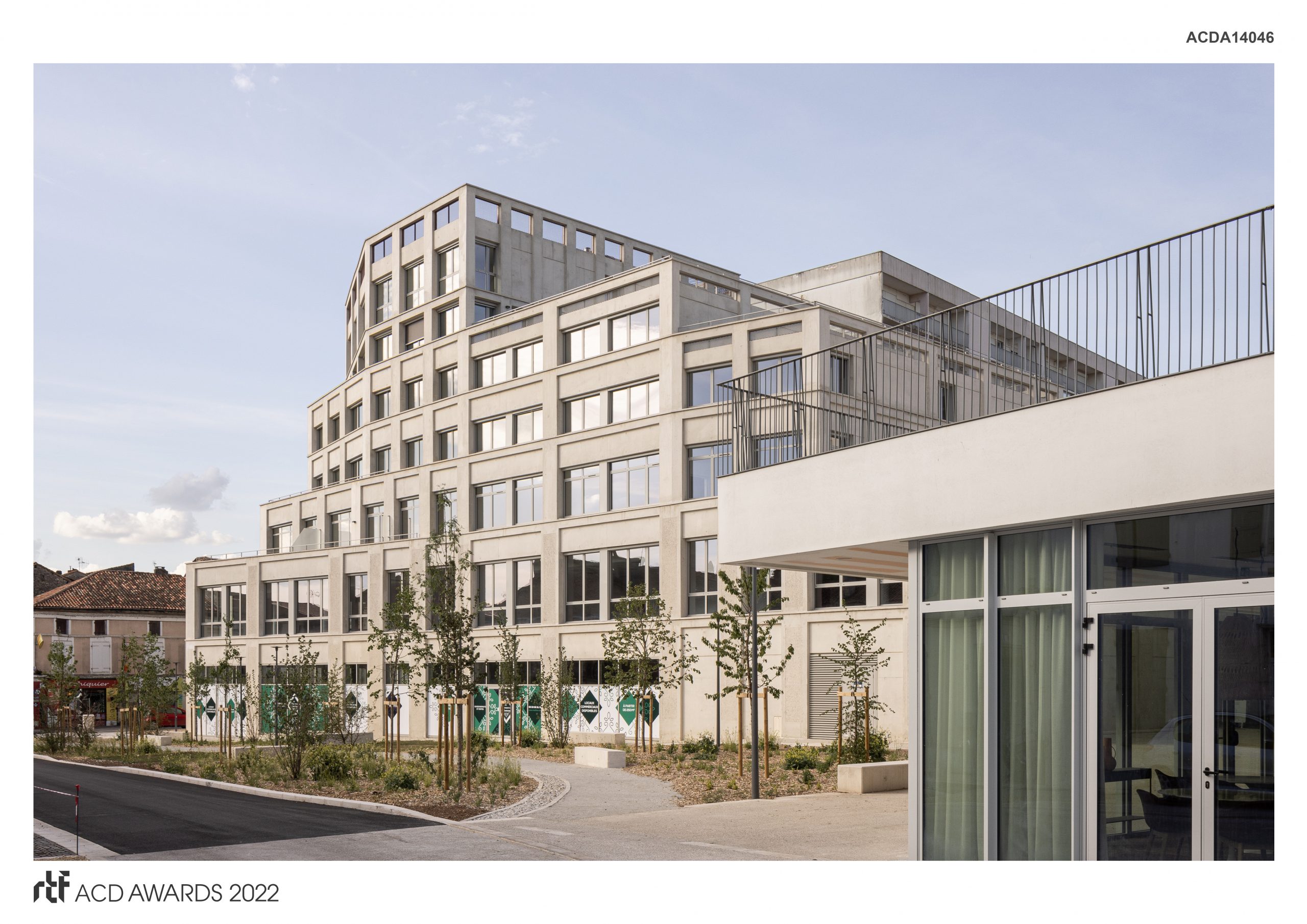 It is a contextual building addressing a dialog between a historical urban tissue and its larger environment. Its uneven and stepped morphology represents the surroundings in its own way, matching the existing nearby stone-made houses. The vast volume was split and rearranged to correspond with the scale and play with the context. For instance, the Southern part of the structure retreats from the rue Leclerc Chauvin, allowing the creation of a generous shaded public square. To the west, on rue de Paris, the base of the building is also set back, thus allowing the volume to rise gradually up and free some space for tree planting.