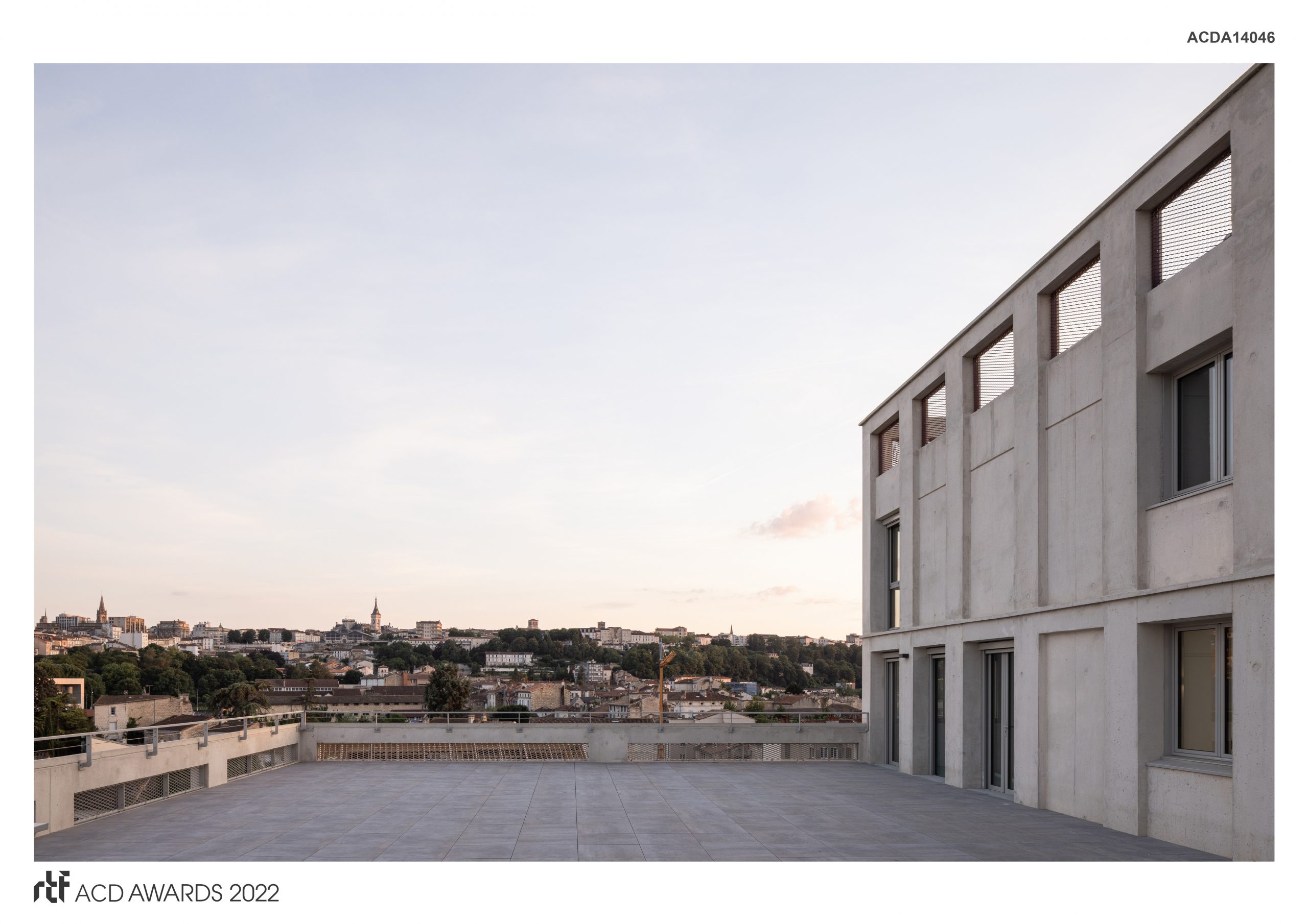 For the historical heritage not to be overwhelmed, structural concrete, as a practical and contemporary material, had been chosen and exposed on the facade with an adjusted color to fit in the environment of Charentes limestone. This concrete skeleton can also be found in plan, so as to allow potential evolutions of functions.