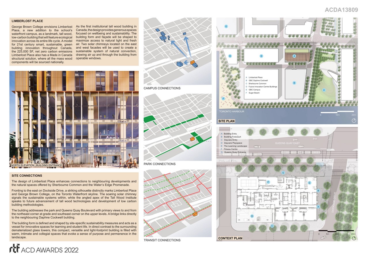 George Brown College envisions Limberlost Place, a new addition to the school’s waterfront campus, as a landmark, tall wood, low-carbon building that will feature ecological innovation across its entire life cycle. A model for 21st Century smart, sustainable, green building innovation throughout Canada, the 225,000 SF, net zero carbon emissions Limberlost Place also has a Made in Canada structural solution, where all the mass wood components will be sourced nationally.