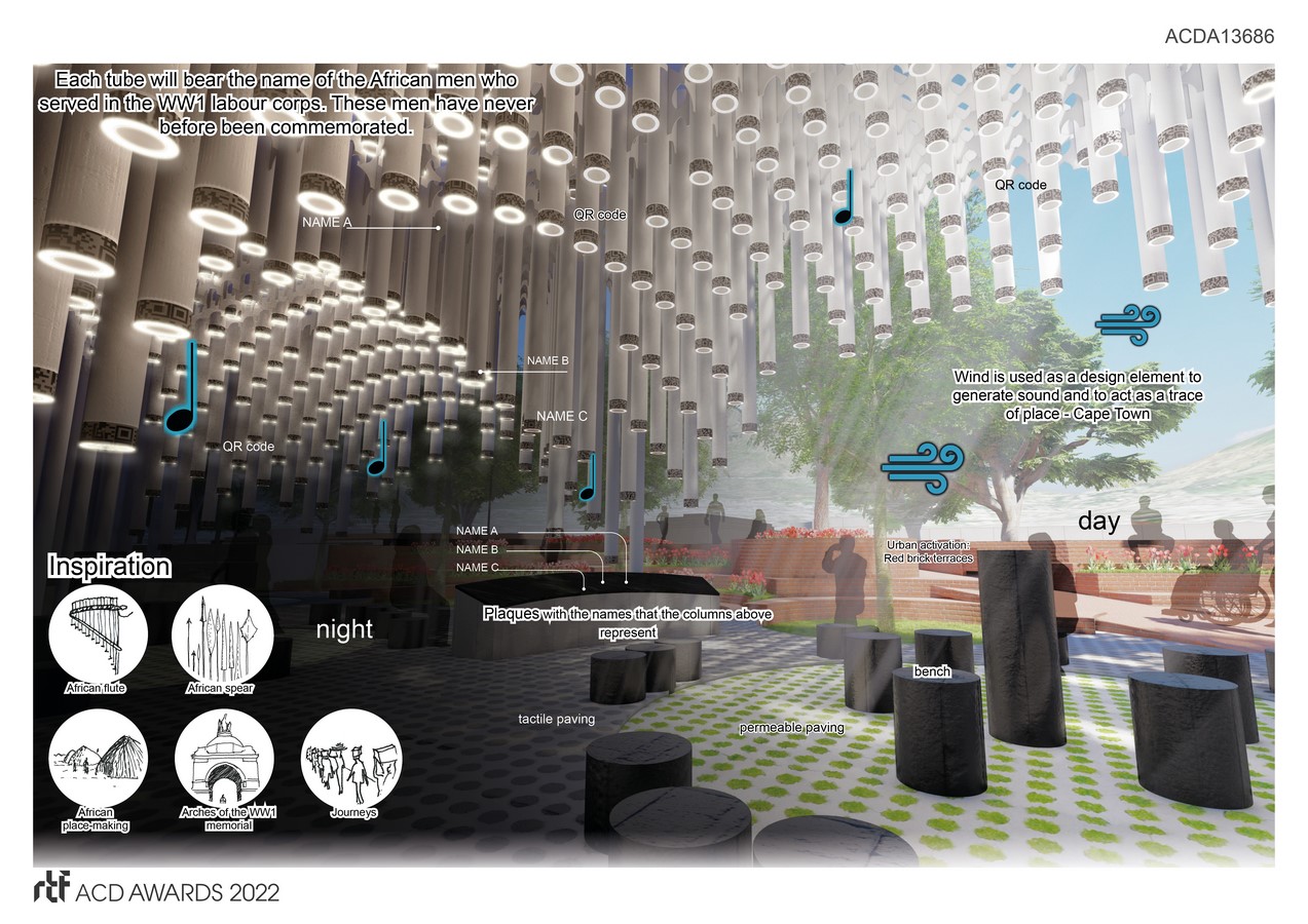 - The memorial is a redress project, designed to commemorate honoring Black South Africans who lost their lives in the First World War by way of an interactive memorial.