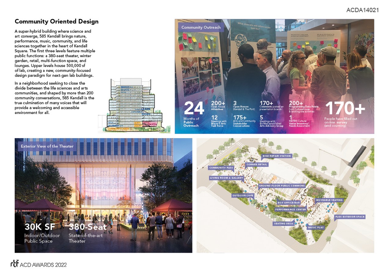 In a neighborhood seeking to close the divide between the life sciences and arts communities, and shaped by more than 200 community conversations, 585 Kendall is the true culmination of many voices that will provide a welcoming and accessible environment for all.