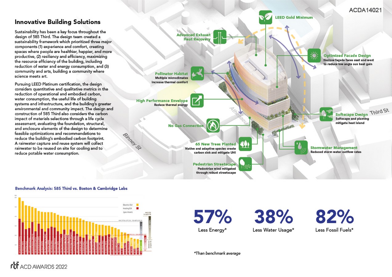 | Consultants: | BioMed Realty, RedGate, Suffolk Construction, BR+A Consulting Engineers, McNamara Salvia Structural Engineers, VHB, Michael Van Valkenburgh Associates, Theatre Projects, Heintges, Jensen Hughes, Buro Happold, Jaffe Holden Associates, Acentech, VDA, St. Onge, Entek Engineering, Lam Partners, Kalin Associates, RWDI, arkaSpecs |