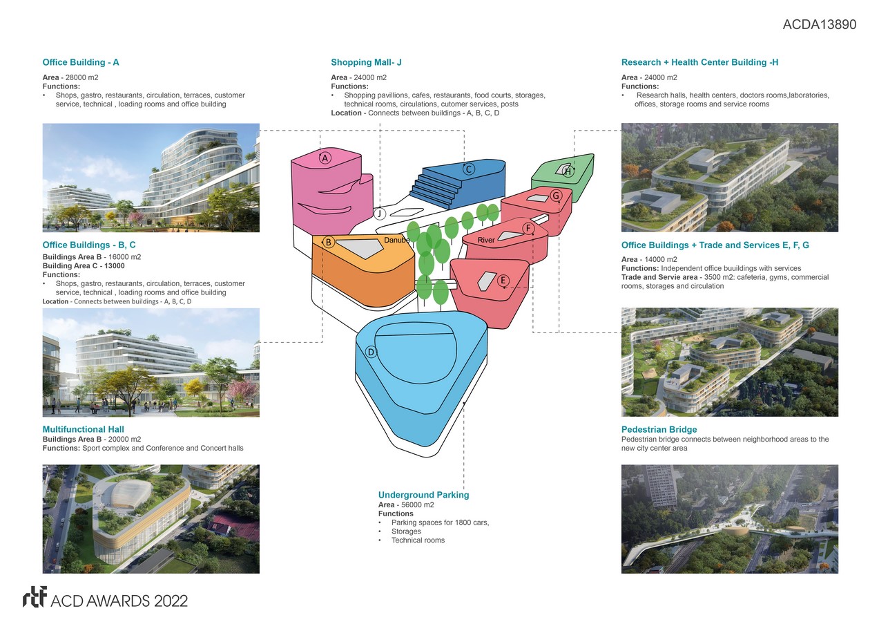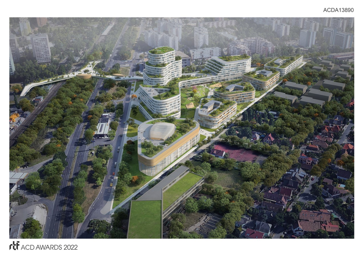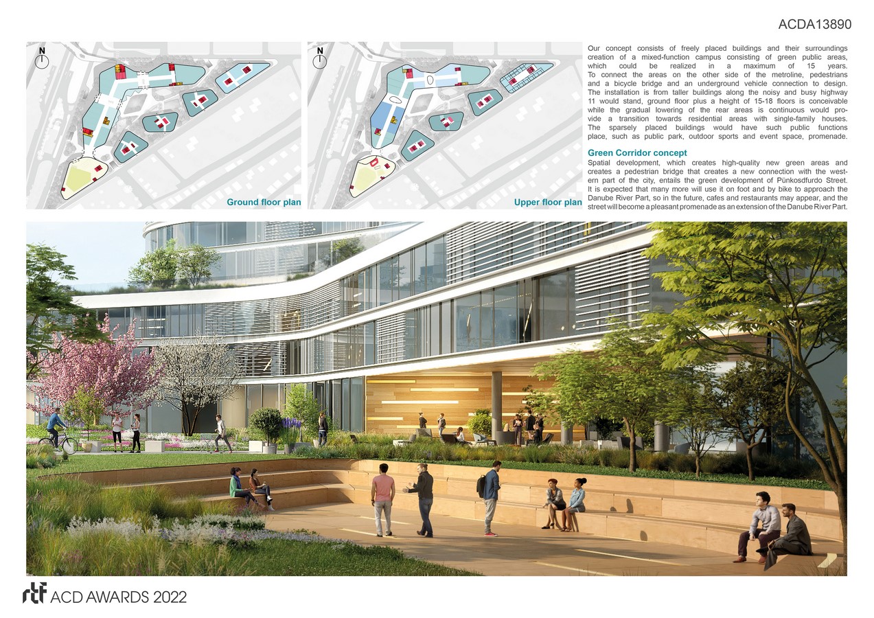 It also integrates the western areas, offering livable access to the Danube River coast for the inhabitants. The proximity of the Danube River banks is an excellent feature: the Danube shore, which can be reached on foot or by bike in a few minutes from this area. Expanding the dynamic transformation of city center spaces, the area is especially suitable for developing a complex office campus that functions as a city center, either by hosting many kinds of offices or other domestic and international universities.