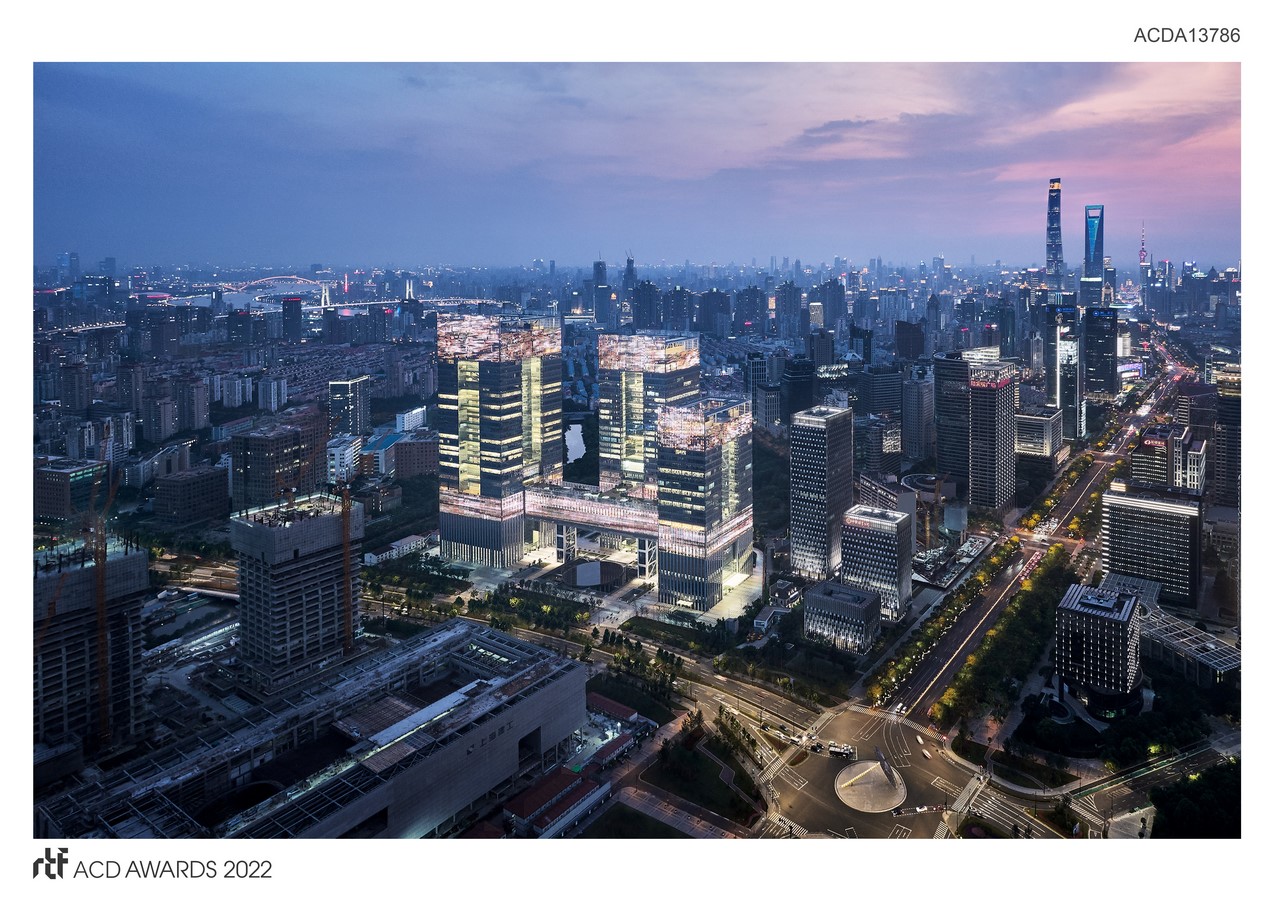 The project was designed for the Shanghai Stock Exchange (SSE), the China Financial Futures Exchange (CFFEX), and the China Securities Depository and Clearing Corporation (CSDCC). The underlying attitude and challenge in the design of the Shanghai International Financial Center was to design a powerful, unified complex of memorable images while addressing the three corporations’ individual needs and providing each with an appropriate individual identity.