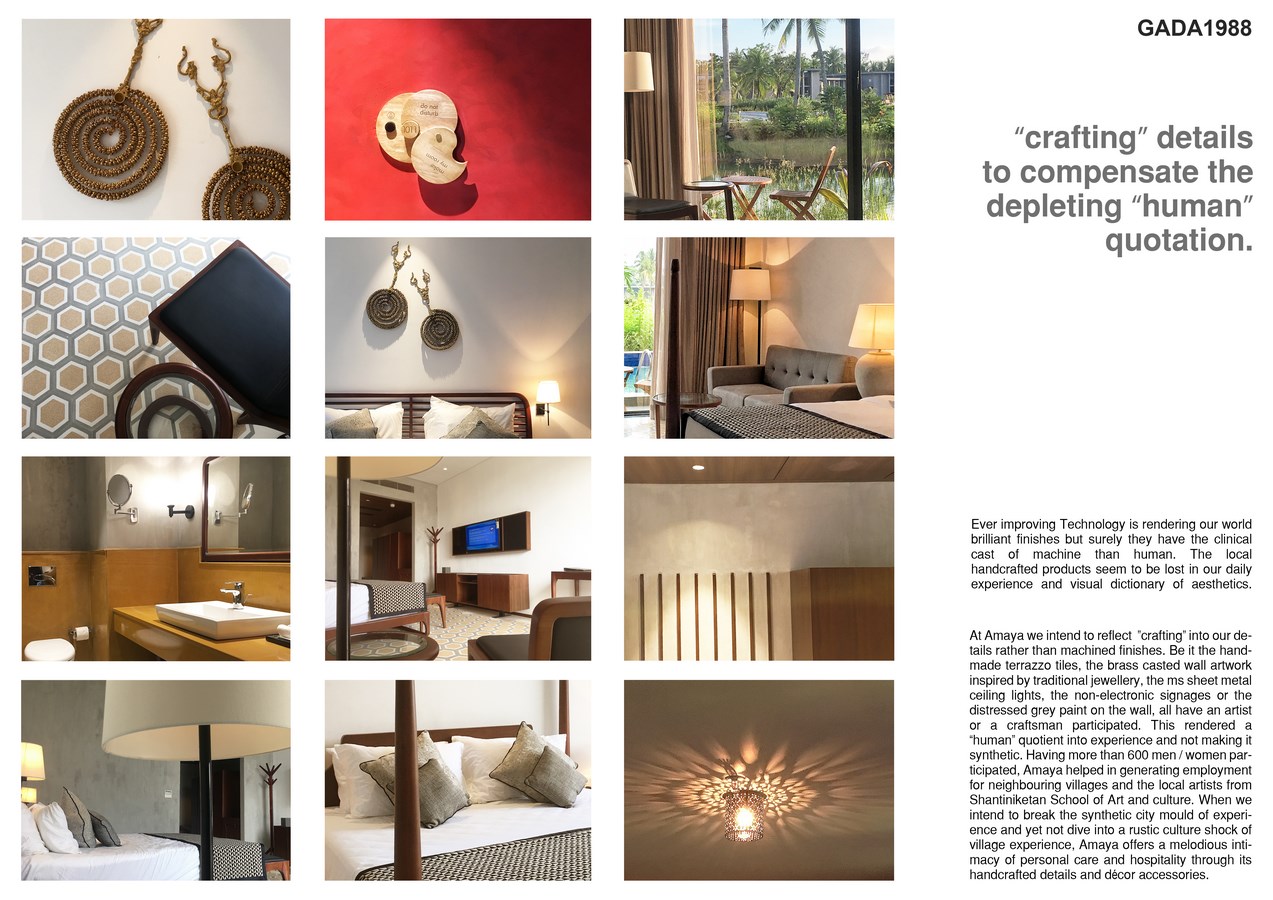 Amaya is neutral in shade, absorbing all shades of urban stress, with shades of nature as the only colours in application. The pure play of light and shadow by its geometry in brick renders a contemporary detail to architecture. EXPLORE SIMPLICITY, ALLOW FOR SIMPLICITY and RESTFULNESS is in order and intent. A 5 sense design attempt of engaging people with INTENDED MINDFULNESS shall be a true resort.