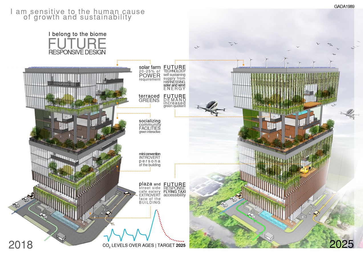 Future adaptability is a must for the design of any new development in this regimental 60’s township with identical blocks which make the place static and unattractive to modern technologies. As such, it shall be not long when flying taxis shall be a mainstream mode of commute and BIOME shall not only be ready to tackle the air traffic with its intervened landing pods but also produce self-sustaining power supply by harnessing solar radiations and wind energy.