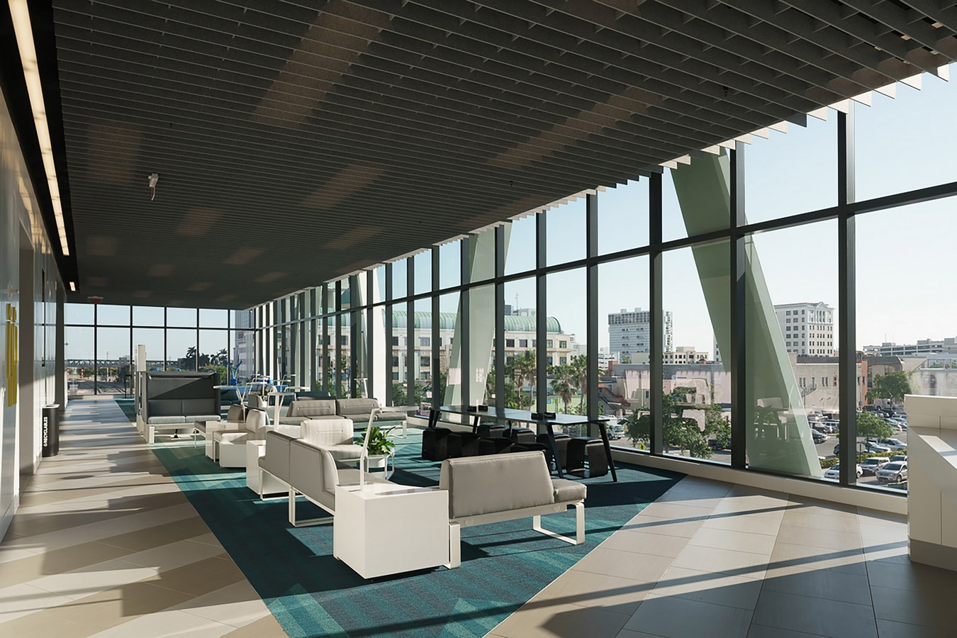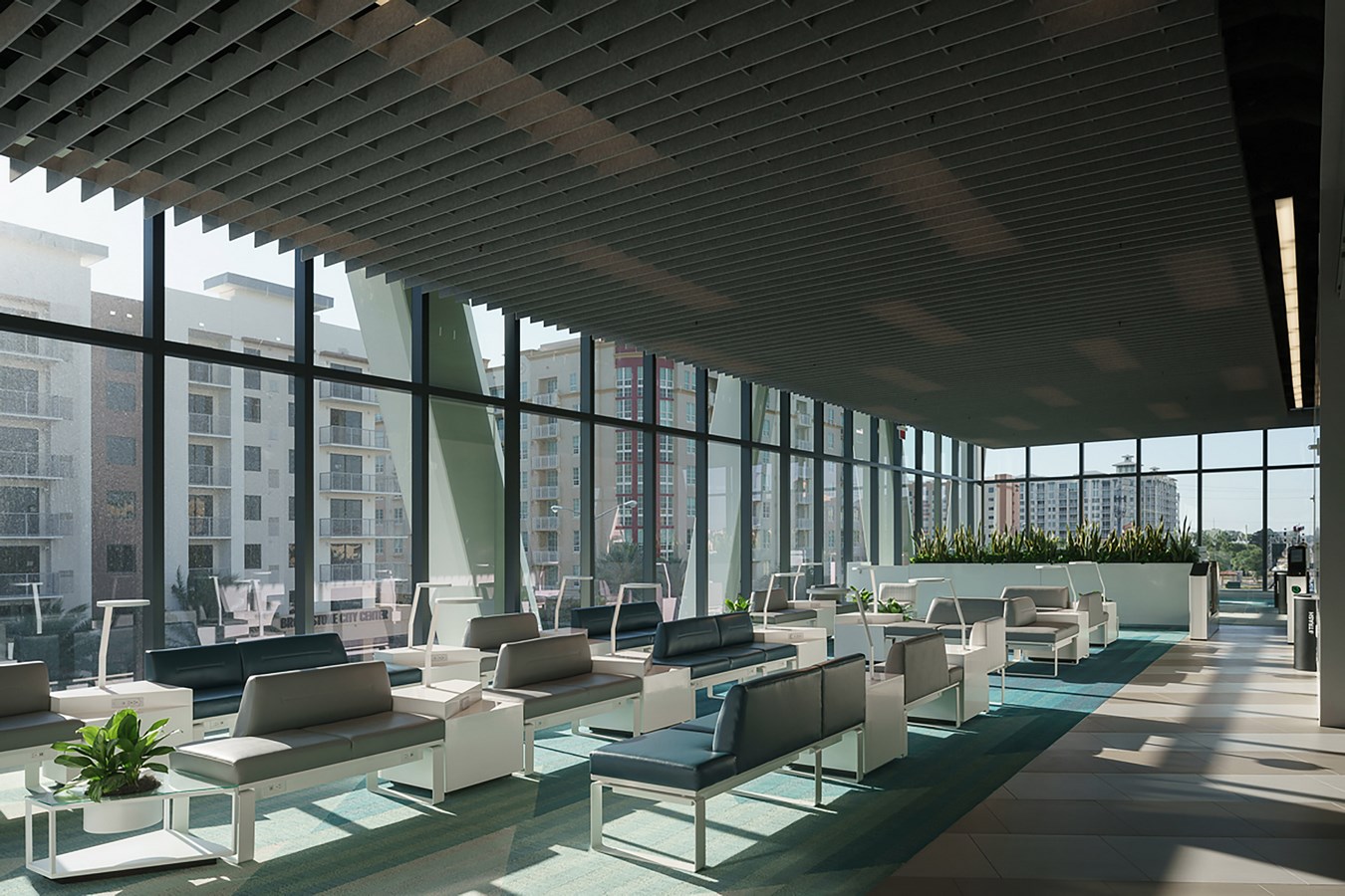 Brightline stations are transportation and social hubs in their respective cities. Our firm developed a common design concept, aesthetic and material palette to connect the terminals. The interiors will include back- painted glass, stainless steel (brushed, blackened and polished) and Corian. All four stations will feature custom-designed geometric patterning in the carpet, walls and ceiling surfaces.