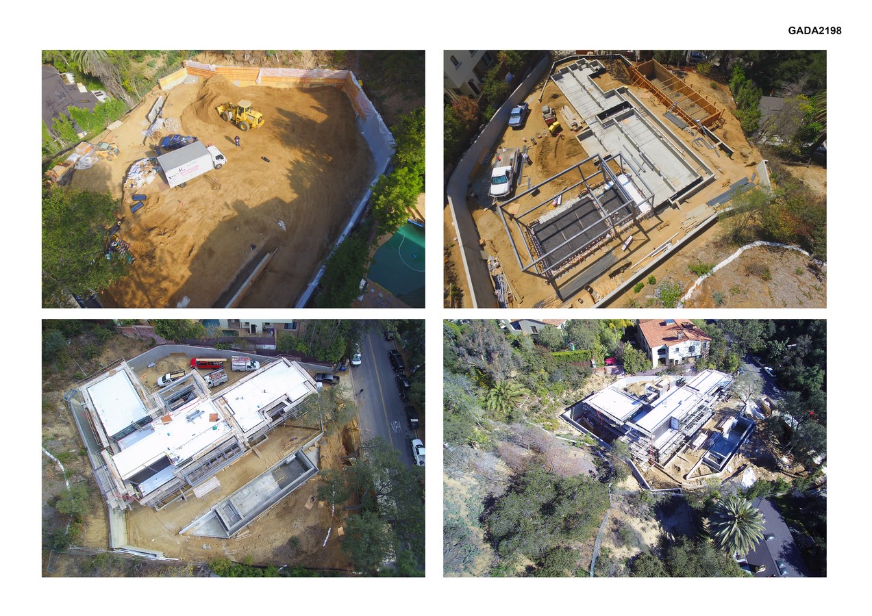 A hybrid prefab and site built project, this house built on a steeply sloping site, is based on a design by Ray Kappe FAIA. Comprised of 6 modules on two levels, containing four bedrooms, two-and-a-half bathrooms, kitchen and dining area, it is customized with a glass stair tower, garage, guest wing, and infinity pool.
