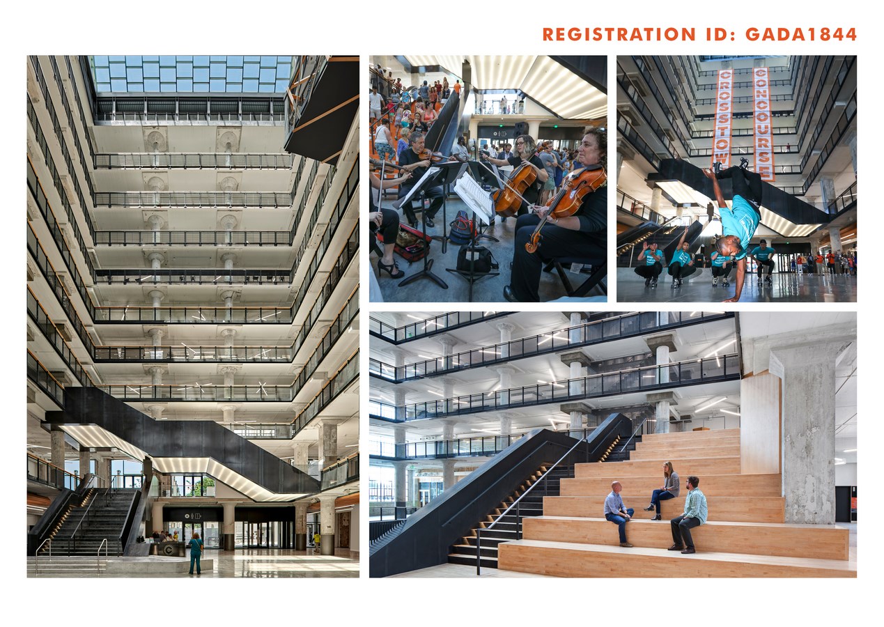 A series of cost conscious architectural extractions and insertions have produced a vibrant new community environment that encourages discovery. Infused with the spirit of the building’s historic distribution system, seven new atria and their corresponding street-like corridors, transport natural light into public spaces. Authenticity of materials was key with salvaged building materials used throughout.