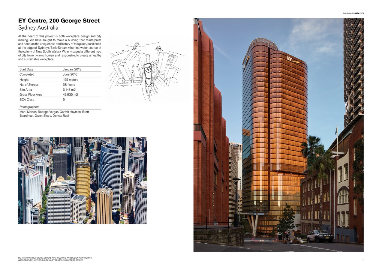 The EY Centre is a building that reinterprets and honours the uniqueness and history of this place, positioned at the edge of Sydney’s Tank-Stream (the first water source of the colony of New South Wales). At the heart of this project is both workplace design and city making. We envisaged a different type of city tower; warm, human and responsive, to create a healthy and sustainable workplace.