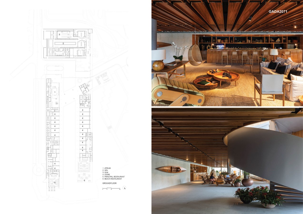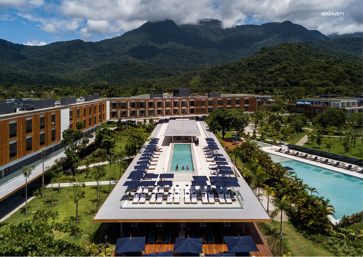 This research has not only guided the dyeing and printing of the exclusive textiles designed for the hotel, but also informed the selection of furniture which decorate the interiors, created by leading Brazilian designers, alongside objects such as lighting fixtures and basketwork made by local craftsmen. The impact of the architectural project was carefully assessed. Every building in the complex has been designed to act as a discreet complement to the lush natural environment.