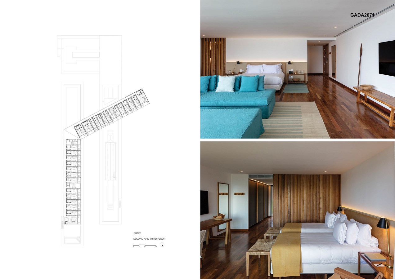 The architecture team endeavoured to provide this contemporary seaside hotel with a unique atmosphere of simplicity and sophistication through research on colours, textures and furniture. The colour palette has been carefully chosen for each of the respective areas, with shades ranging from terracotta and ochre to several tones of blue and green.