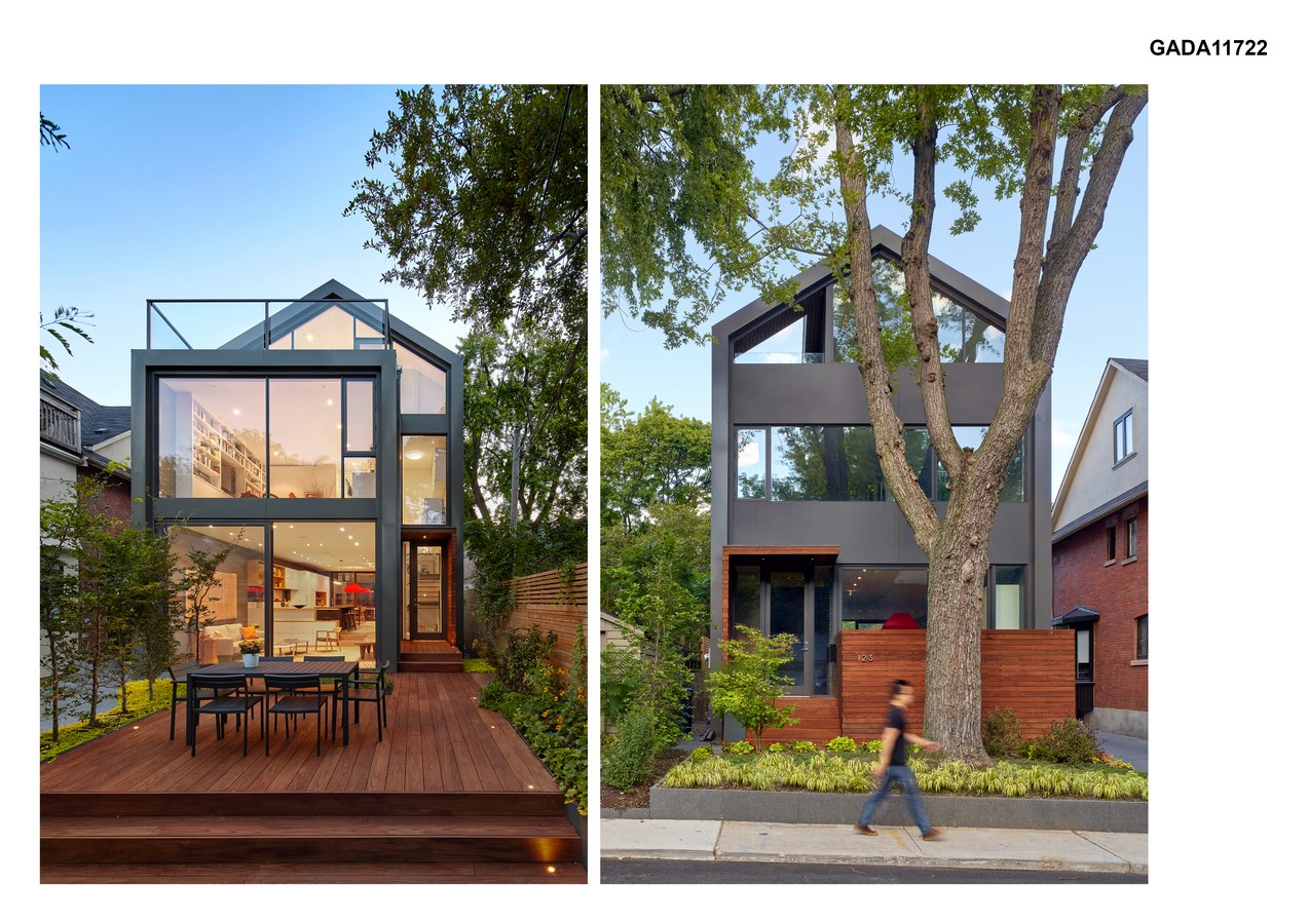 Situated on a narrow lot in an older Toronto neighbourhood, the Skygarden House provides outdoor living spaces on multiple levels to address the owners’ desire for a better connection to the home’s natural surroundings. The owners used to spend their weekends at their country home, located next to a stream and surrounded by trees; they wanted their new home in the city to mimic this bucolic experience in an urban environment, and they wanted their home to be as sustainable as possible.