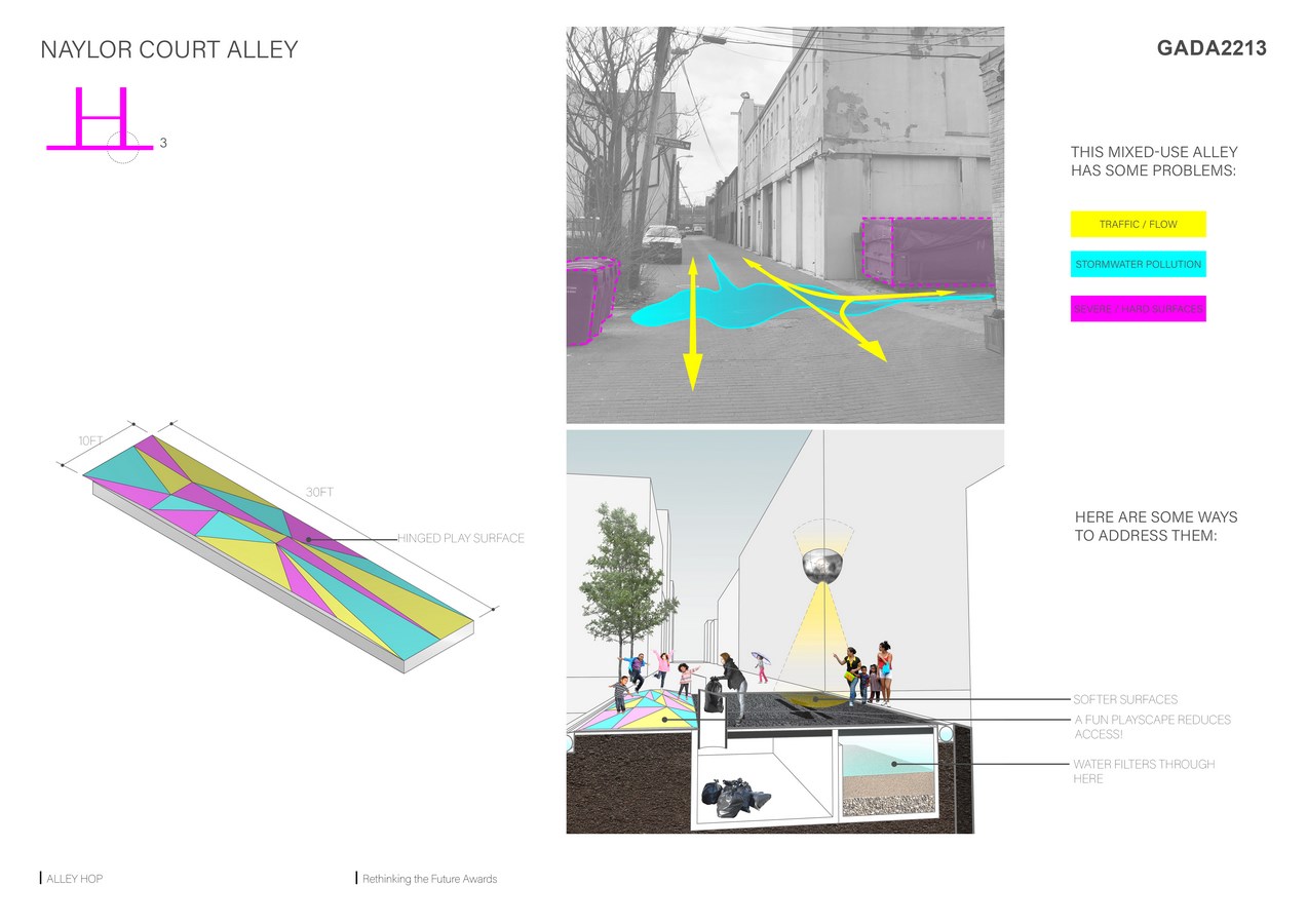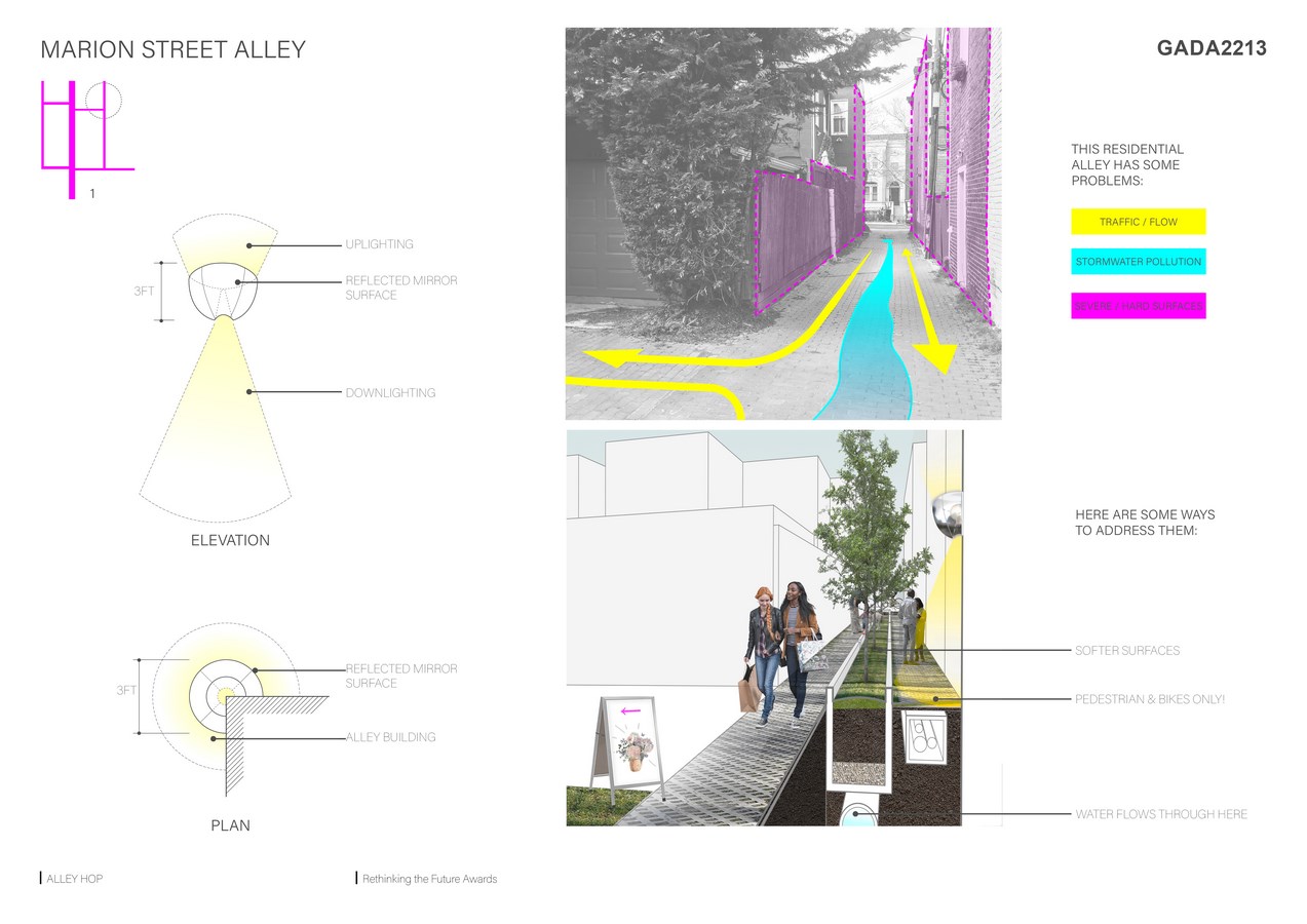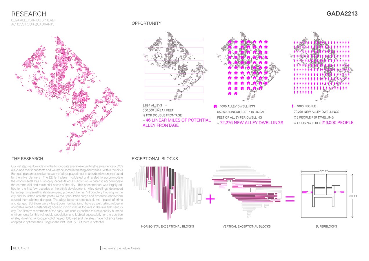 The Washington Alley Project (WAP) examines DC’s informal alley network as a viable site for new modes of urban living, presenting the city with an opportunity to adapt to future social and technological change without sacrificing the city’s unique architectural heritage.