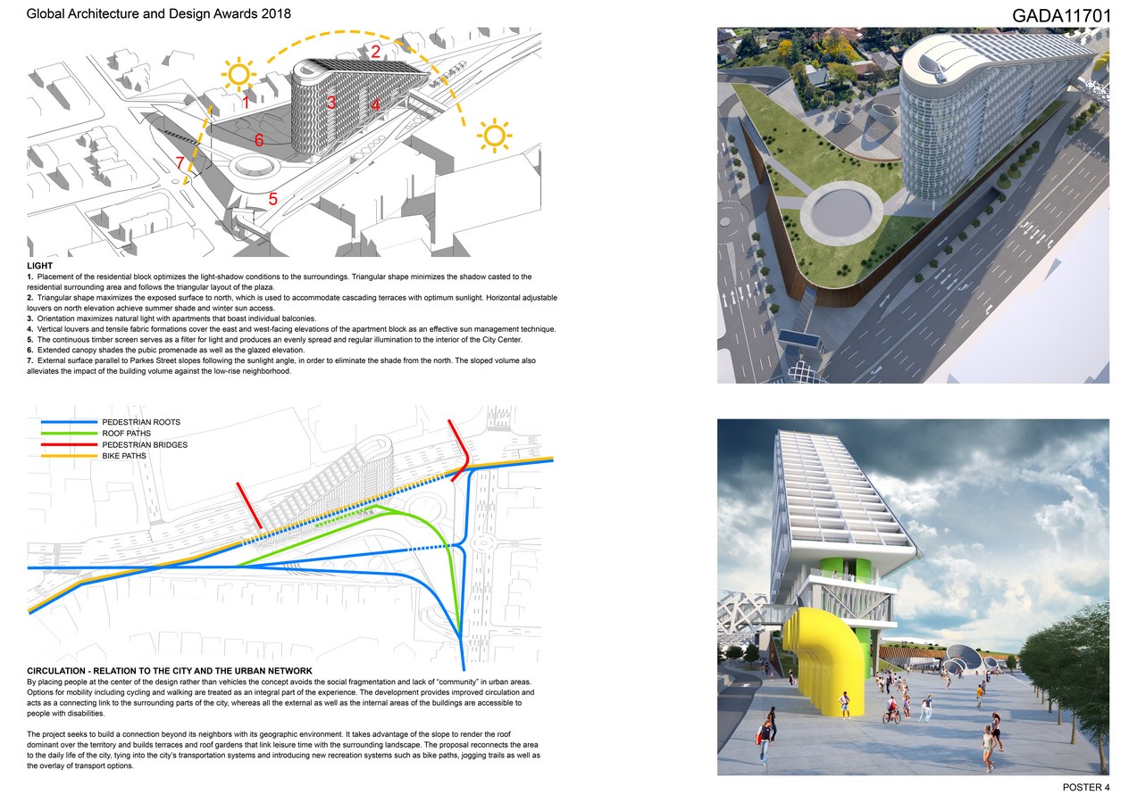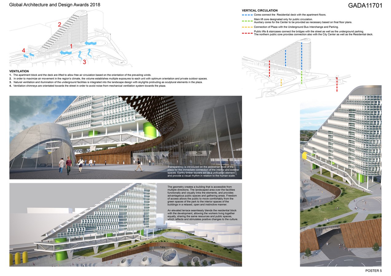 By placing people at the center of the design rather than vehicles the concept avoids the social fragmentation and lack of “community” in urban areas. Options for mobility including cycling and walking are treated as an integral part of the experience. The development provides improved circulation and acts as a connecting link to the surrounding parts of the city, whereas all the external as well as the internal areas of the buildings are accessible to people with disabilities.