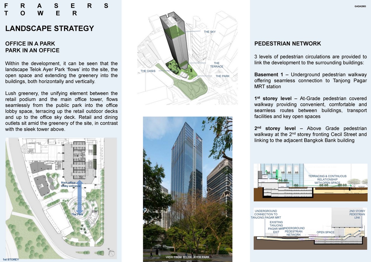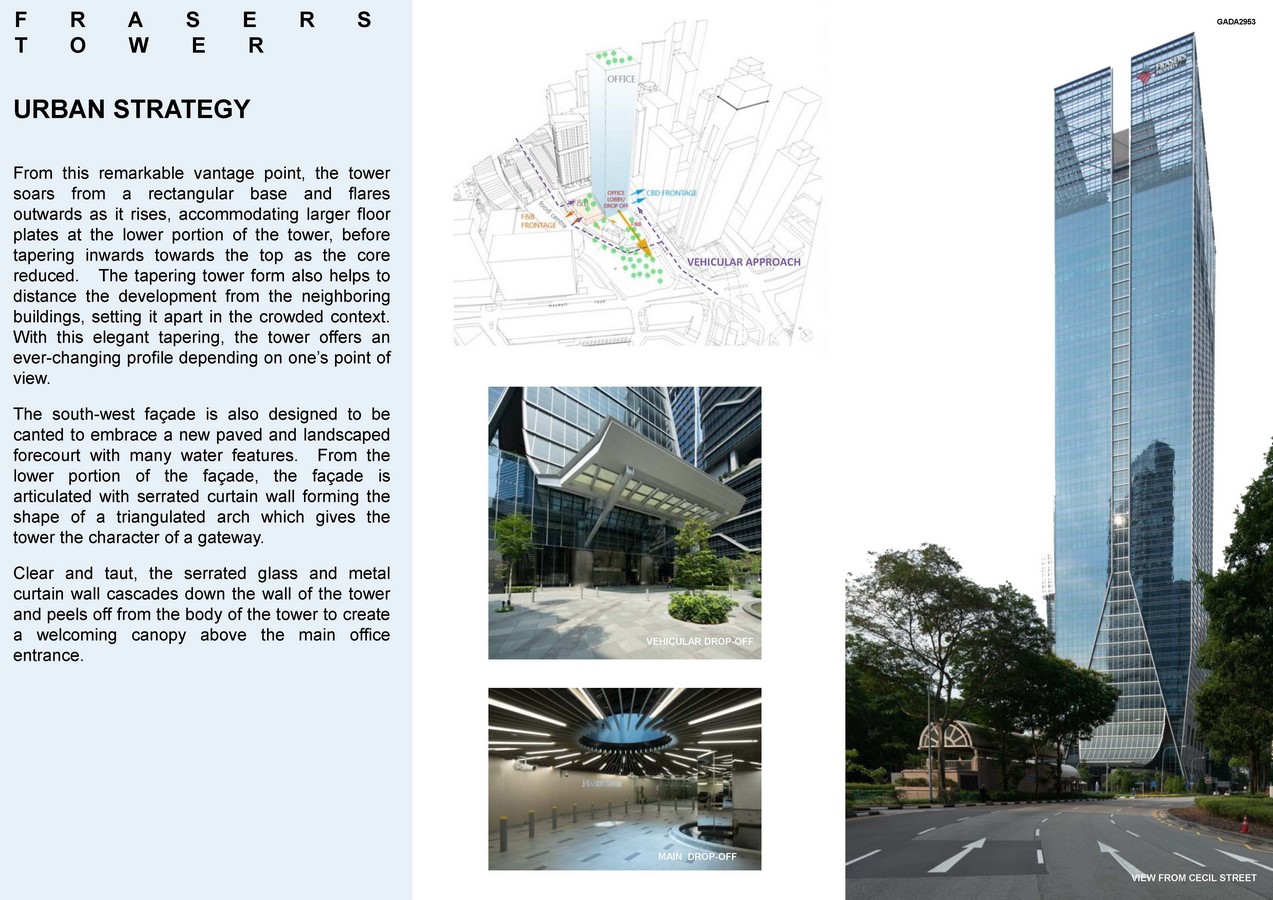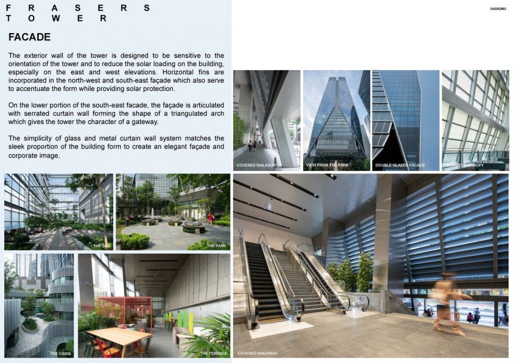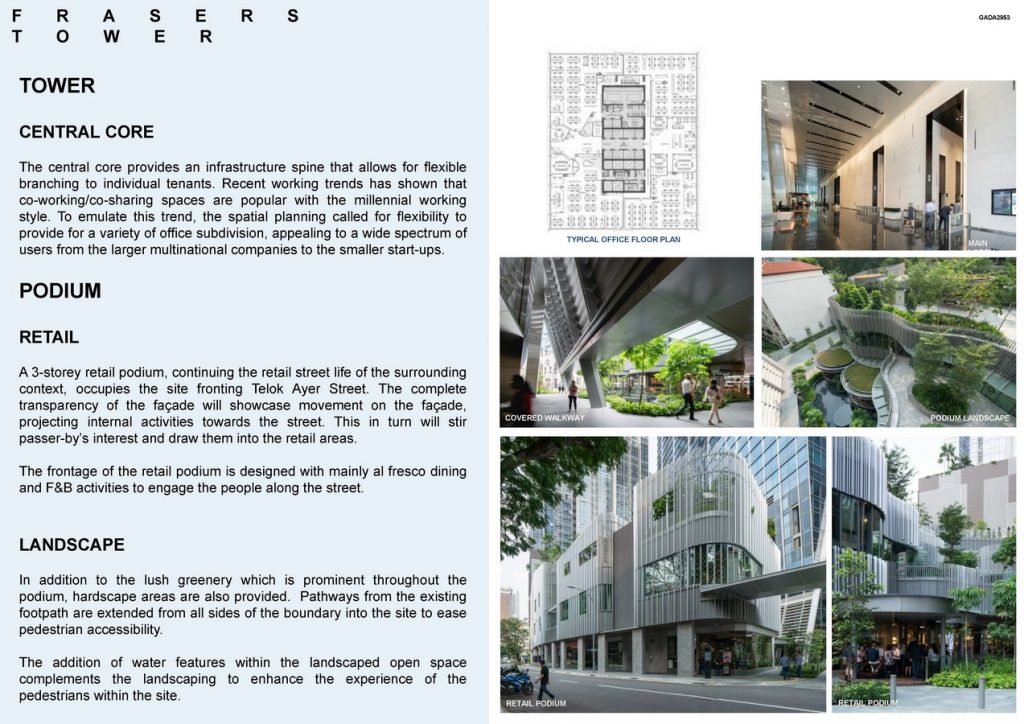 Frasers Tower stands at 235m tall and is nestled at the entrance to Singapore’s Central Business District, surrounded by a fascinating mix of modern cutting-edge architecture and traditional heritage buildings such as shop-houses and a national monument. Frasers Tower features indoor and outdoor areas surrounded by lush greenery and a 3-storey cascading retail podium. The development also enjoys seamless connectivity via underground walkway to Tanjong Pagar MRT station along the East-West line and is within walking distance to a myriad of transportation networks including North-South, Downtown and upcoming Thomson-East Coast Lines.