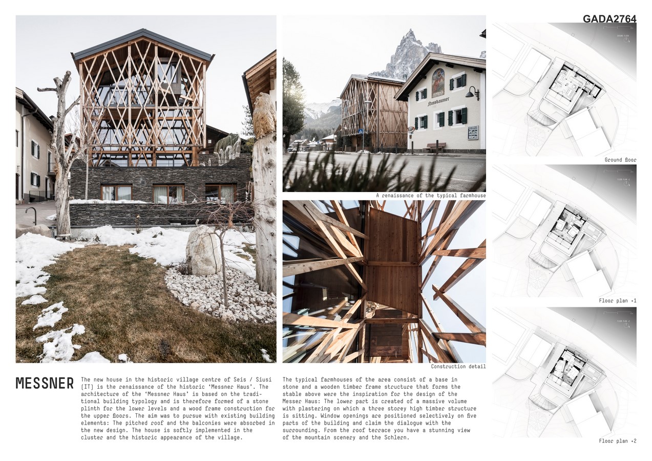 The new house in the historic village centre of Seis / Siusi (IT) is the renaissance of the historic . The architecture is based on the traditional building typology and is therefore formed of a stone plinth for the lower levels and a wood frame construction for the upper floors. The aim was to pursue with existing building elements: The pitched roof and the balconies were absorbed in the new design.