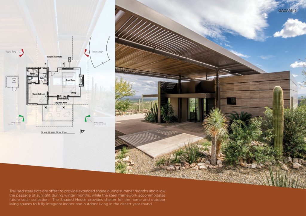 The Shaded House provides shelter for the home and outdoor living spaces to fully integrate indoor and outdoor living in the desert year round.