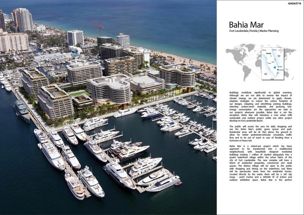 Bahia Mar is a mixed-use project which has been approved to be transformed into a multifaceted neighborhood, with beautifully designed residential buildings totaling 1 million SF nestled adequately into a quaint waterfront village within the urban fabric of the city of Fort Lauderdale. The new complex will have a blend of residential properties, commercial and retail spaces.