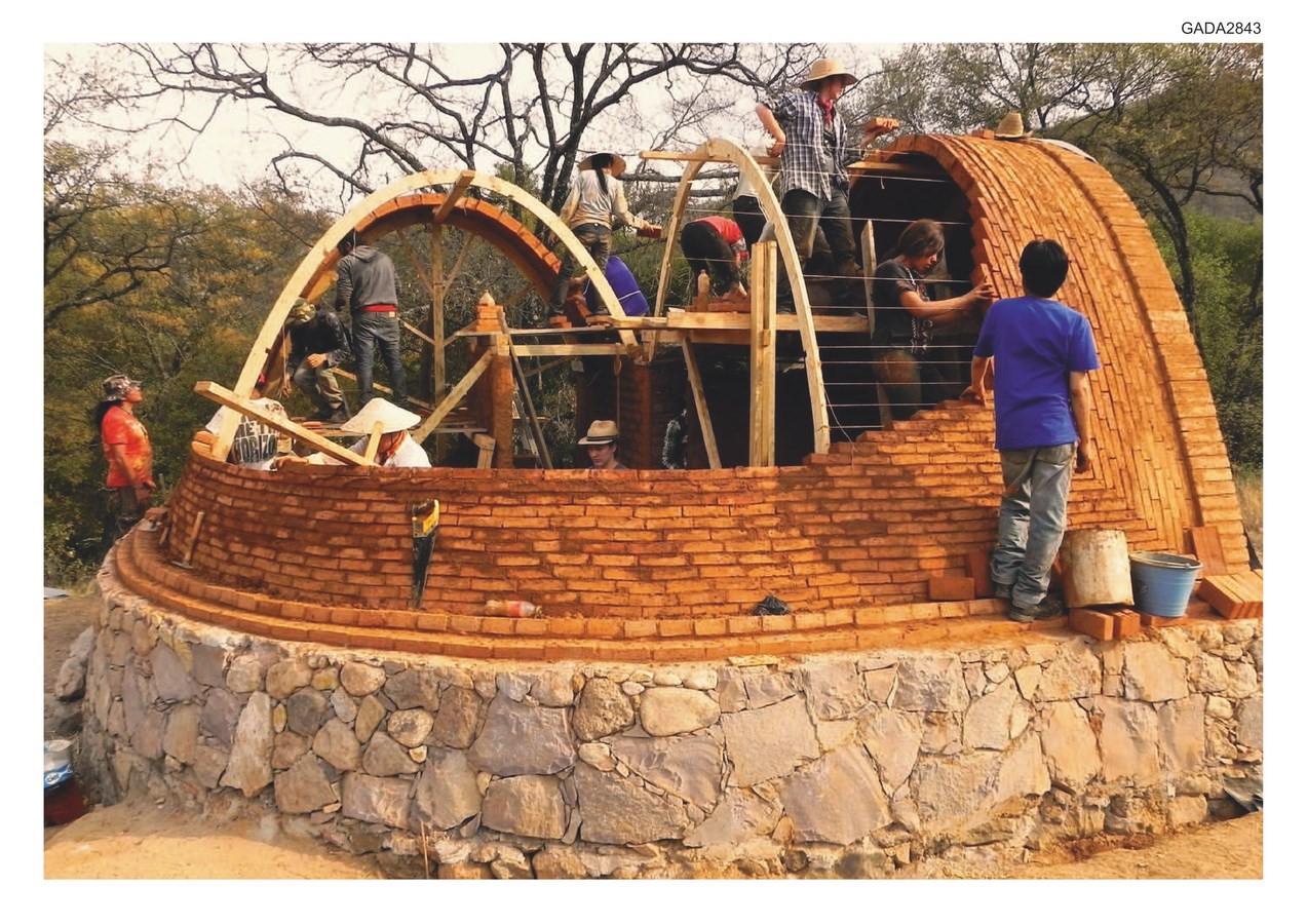 - The second stage is the one-week intensive “mud building workshop” organized and hosted by the client. The challenge was to build about 50m2 of complex vaulting in 6 days.
