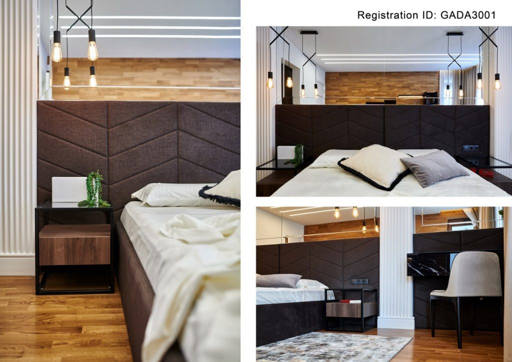 The interior of a home should primarily brings a sense of comfort. In this apartment, the design we created is no exception. On an area of 140 m2 there are an elegant living room with kitchen, corridor, two bathrooms, master bedroom with closet and guest room. We bet on a combination of modern vision with classic references on the walls, reminiscent of French chic.