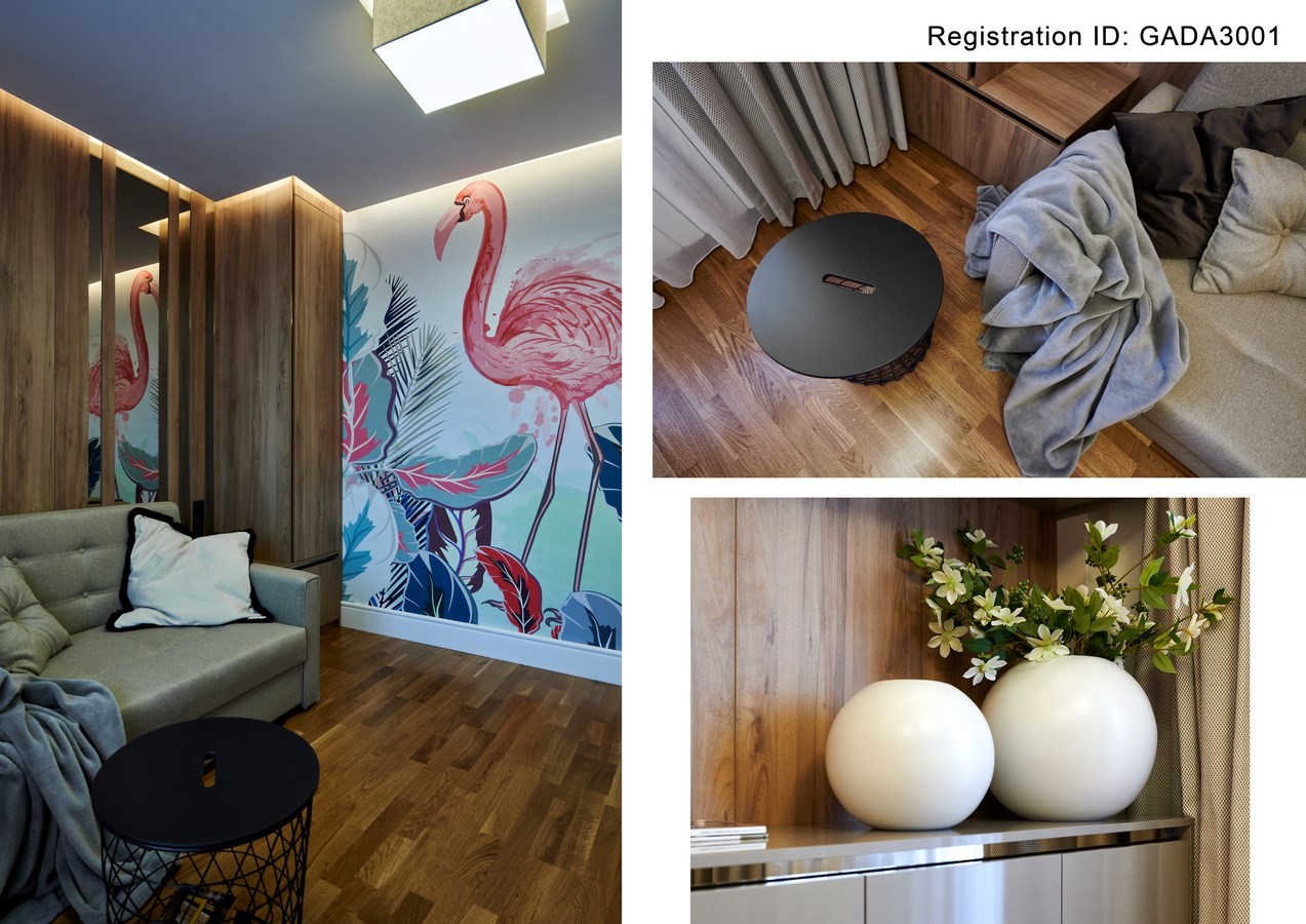 In the overall interior concept, the warm colors stand out, and in certain places decorative vegetation compositions are made, creating a reference to nature. These places are the corridor and the smaller bathroom, which are generously landscaped for interior contrast. All the rooms have basic and decorative lighting.