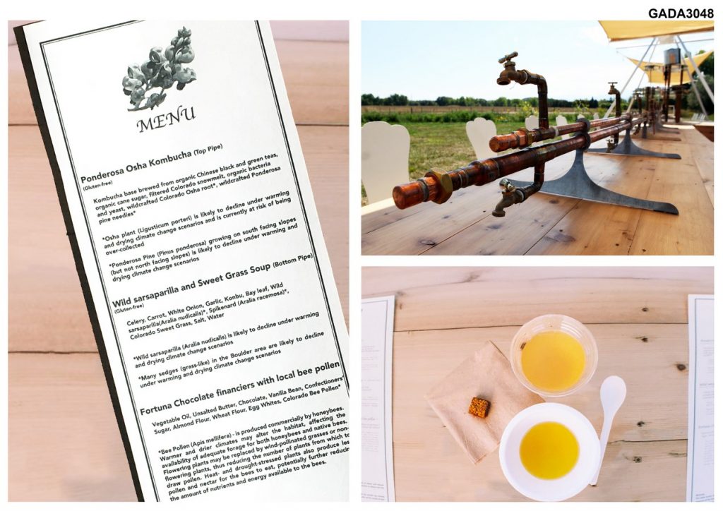 HARM TO TABLE is a table that travels the country to serve food made of plants and natural resources of that local area that will be in major decline or extinct over the next 20-40 years due to the changing climate. The project focuses on directly translating the research of the world’s top climate scientists into an experience where you can actually eat the results of their work. Working with over 20 national climate scientists, and dozens of local climate scientist and chefs across the US, to design and produce the food items served at HARM TO TABLE, each location specific menu changes its diverse offerings as ecological systems are increasingly disturbed.
