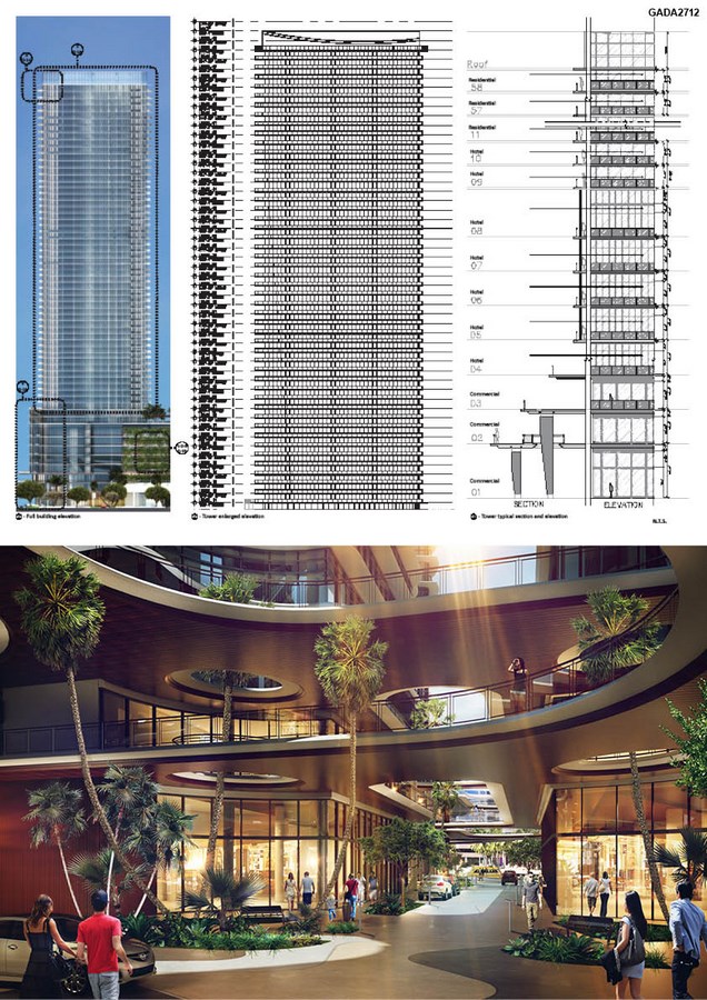 At the ninth level, all four towers connected by a 6,000-square-feet walkway, re-invents the idea of a floating plaza where residents and visitors can interact and enjoy the view over the city.