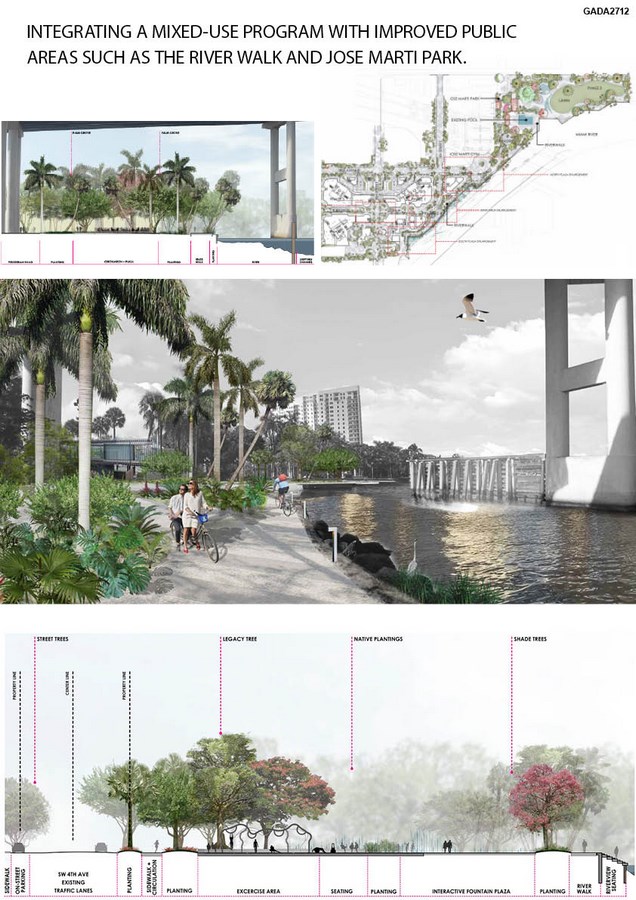 Miami River is a 10-acre Special Area Plan, under the Miami 21 zoning code, designed to activate its surrounding by integrating a mixed-use program with improved public areas such as the river walk and Jose Marti Park. Miami River’s