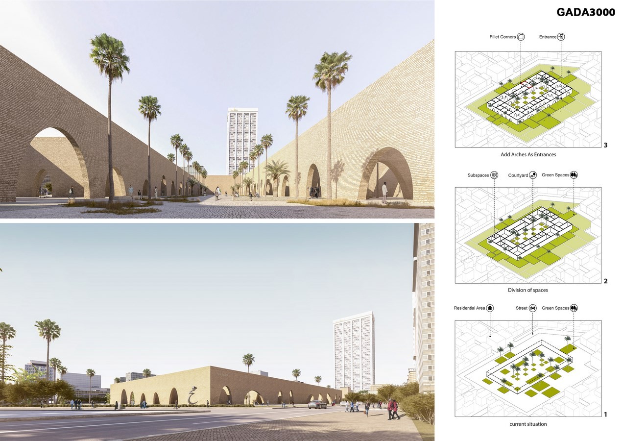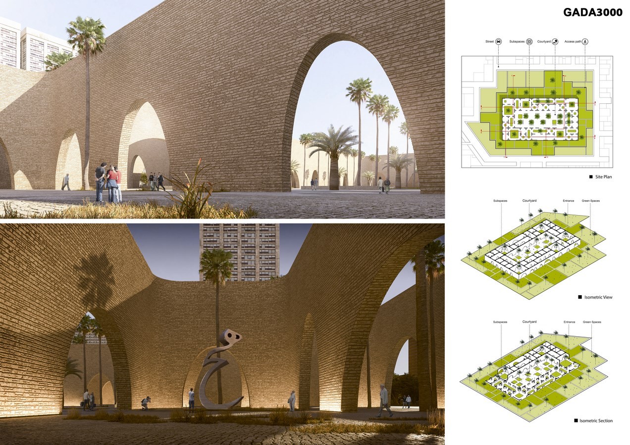 2-Considering the introversion feature in Iranian architecture by designing two permeate layers that protect the courtyard from urban hubbub. (central yards in Iranian houses).