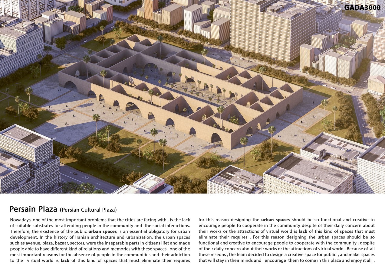 The urban space should be able to response the people requires with different ages, features with and the limitations in all the situations and also be able to provide sense of security and belonging for them. Since the best way to understand the urban space is looking closely to the process of urban designing through the history, the concept of designing the Persian Plaza has gotten from ancient Iranian urban spaces like narrow alleys in hot and dry climate which displayed the significant role of lights and shadows. These spaces connected the main parts of the neighborhood and plazas with each other.