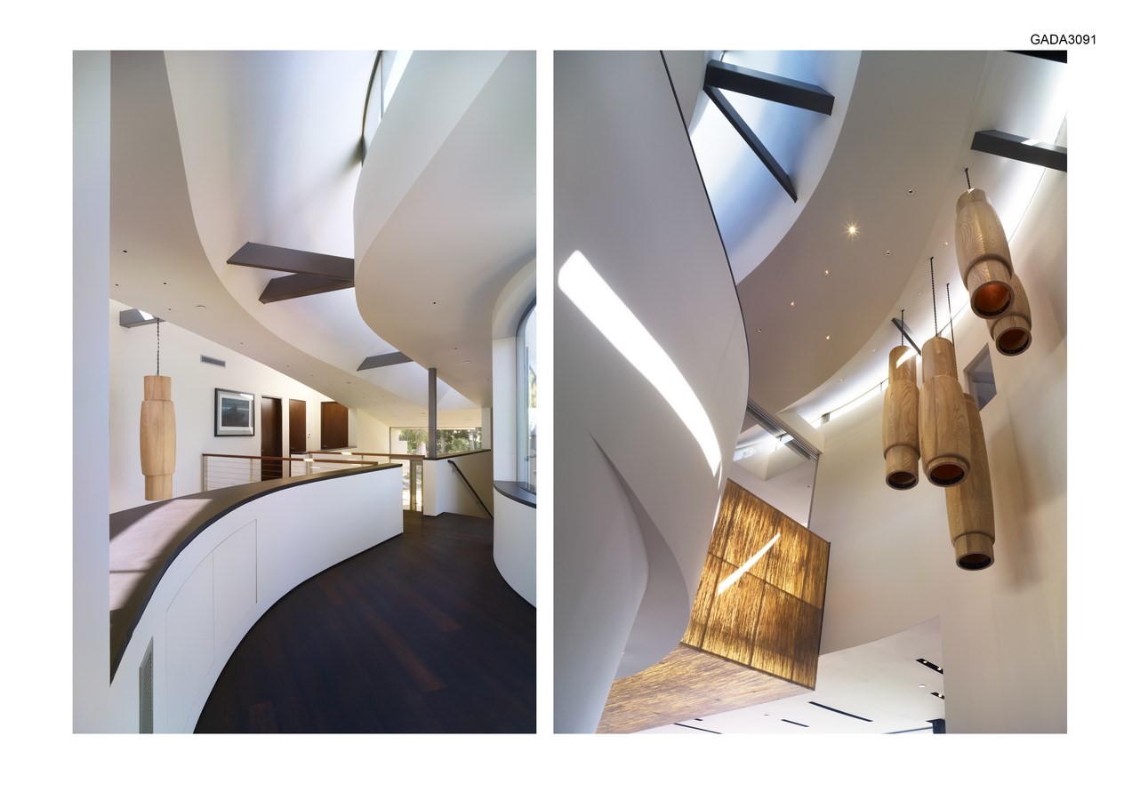 The major shifts in geometry relate to the panoramic views, with a narrative sequence that echoes the shoreline beyond.ย A fluid hallway serves as the nexus of the house, while the expansive living areas opens up entirely to the exterior, so that the house is connected to the exterior both in its narrative sequence and its physical presence.