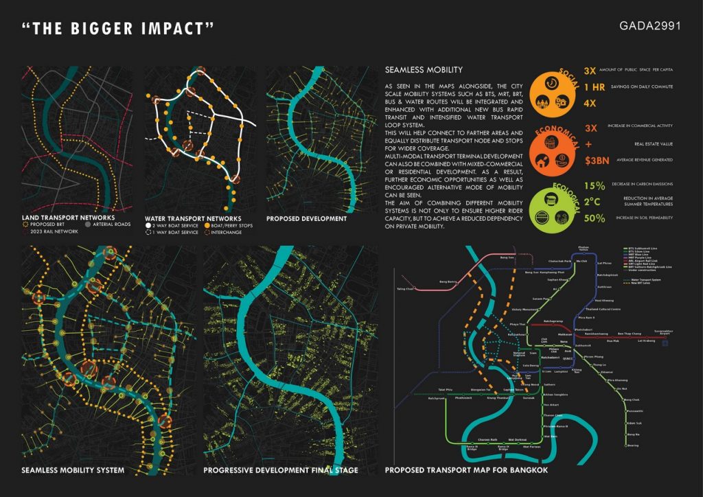 Bangkok is one of the most visited city in Asia. With a growing population of over 10m, further urbanization is inevitable. Climate change & urbanization have brought in increasing variations and unpleasant interruptions to Bangkok’s growth. Flash Floods remain to be at forefront of its catastrophic after effects. With over 9m vehicles on its streets, Bangkok also suffers from one of the world’s worst traffic conditions. With losses of over $US 1.2B worth of fuel & 21 million tonnes of Carbon emissions annually – urban growth contrasts a decline in quality of people’s life.
