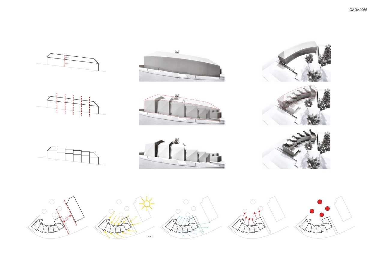 In our approach, the idea was to carefully analyze these issues and respond by using them as a base point of transformation into resources, and furthermore into qualities, thus bringing a new vision of a collective housing typology.