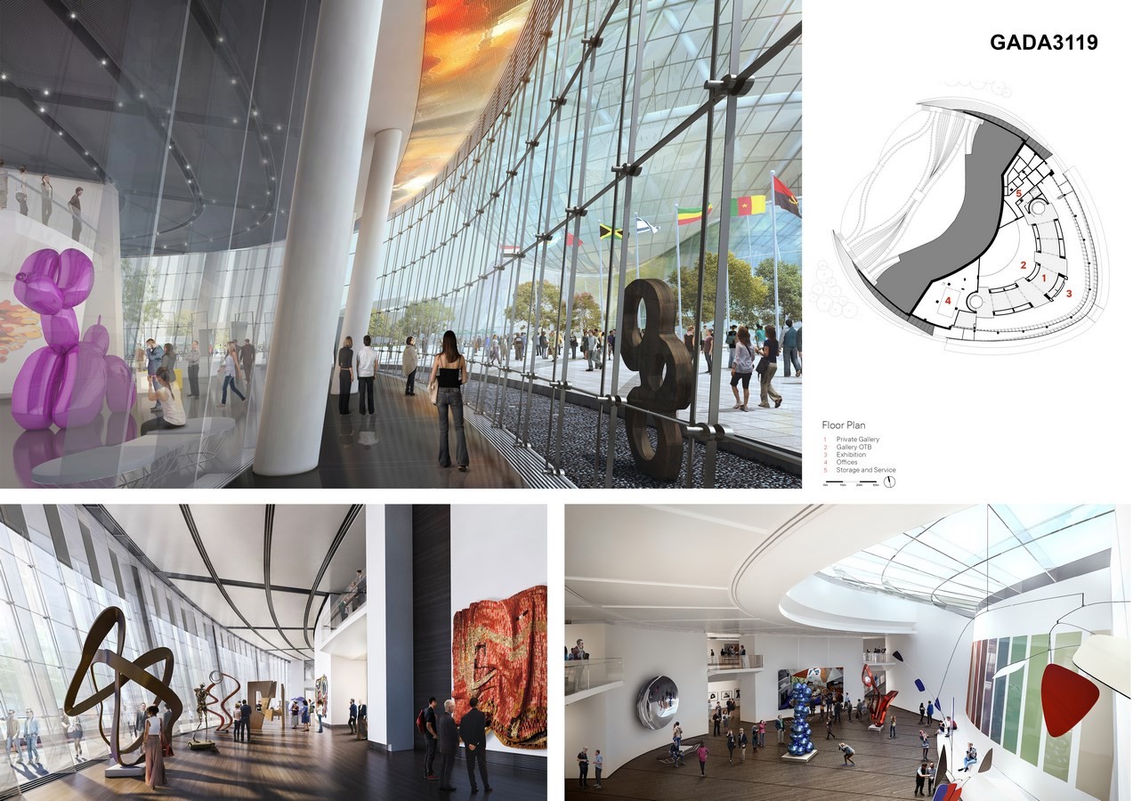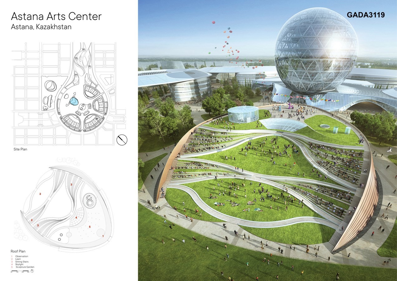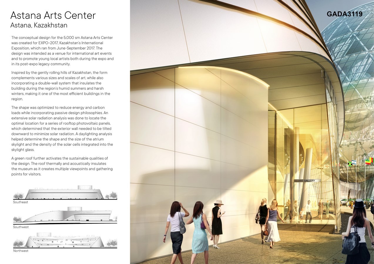 The conceptual design for the 5,000 sm Astana Arts Center was created for EXPO-2017, Kazakhstan’s International Exposition, which ran from June-September 2017. The design was intended to be a venue for international art events and to promote young local artists who currently lack gallery representation, both during the expo and in its post-expo legacy community.