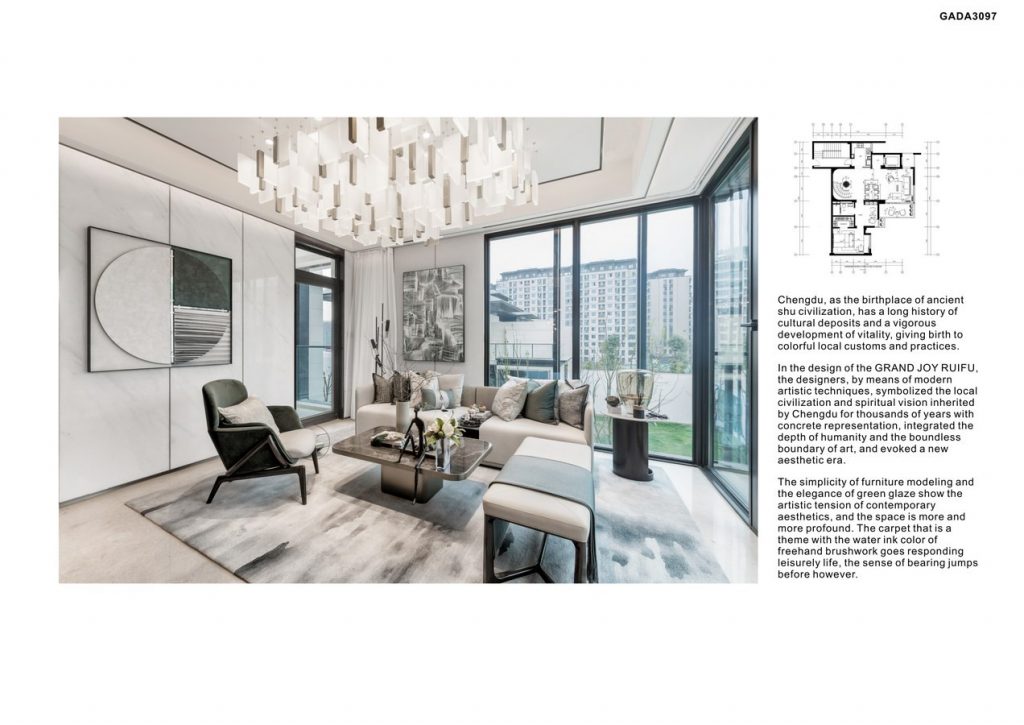 In the design of the GRAND JOY RUIFU, the designers, by means of modern artistic techniques, symbolized the local civilization and spiritual vision inherited by Chengdu for thousands of years with concrete representation, integrated the depth of humanity and the boundless boundary of art, and evoked a new aesthetic era.
