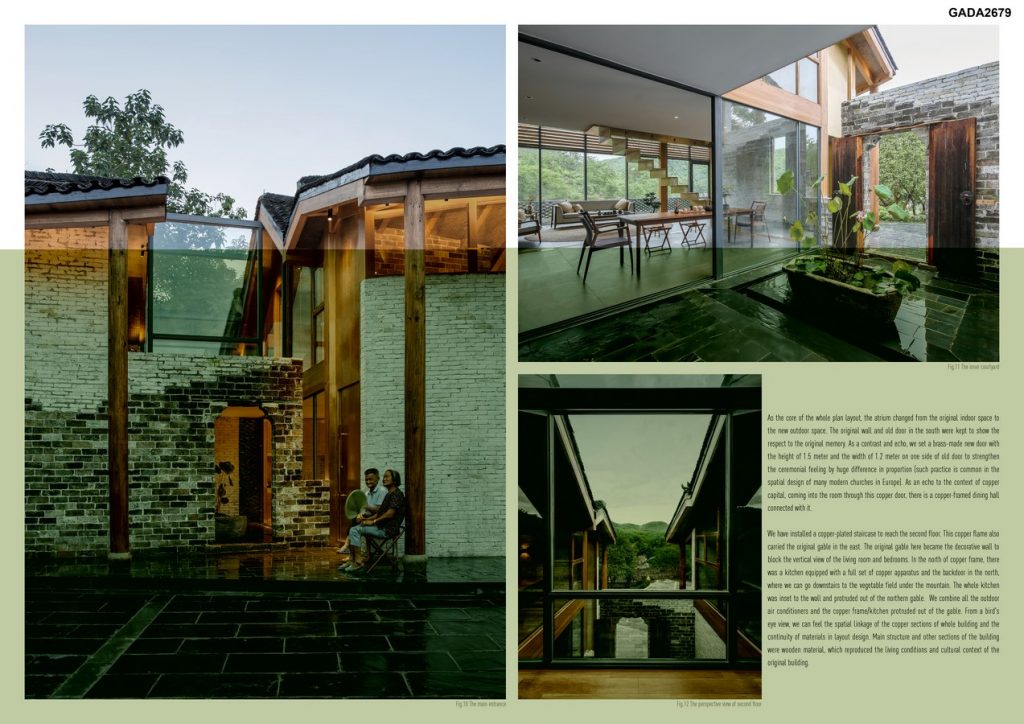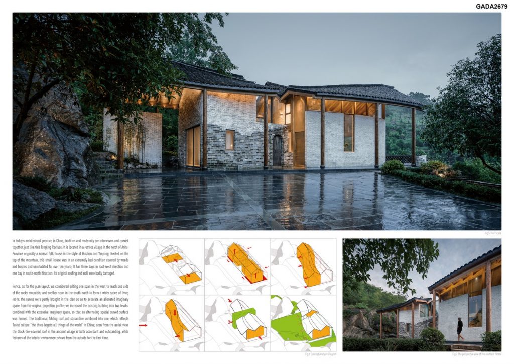 In today’s architectural practice in China, tradition and modernity are interwoven and coexist together, just like this Tongling Recluse. It is located in a remote village of Anhui Province originally a normal dwelling in the style of Huizhou and Yanjiang. Nested on the top of the mountain, this house was in an extremely bad condition and uninhabited for over ten years; It has three bays in east-west direction and one bay in south-north direction.