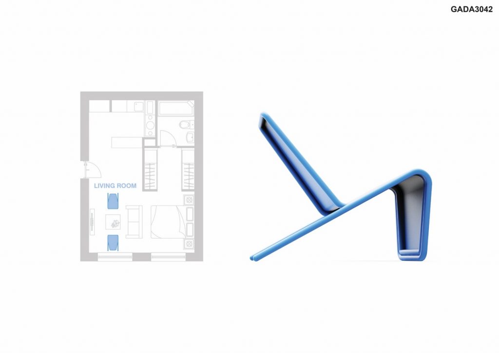 For space saving use in a micro-dwelling unit, it can be used either in a living room or in the kitchen and bar area. For eventful spaces, two chairs can be positioned and arranged to have a lounge configuration, which has lower seating height (372 mm), in front while having the bar configuration, which has higher seating height (713 mm), in the back without obstructing views.