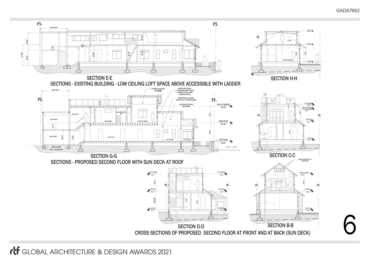 The building structure had deteriorated throughout the years due to settlement caused by minimal concrete foundations as well as massive termite damage. The attic space was utilized during the years as an apartment which did not have proper amenities thus taxing the building further into deterioration. Building style can be considered a hybrid of Victorian, Georgian and Orientalist movement of the 19th century. These details were carefully studied to inspire the details developed for the addition and the repairs as shown on sheets 1 through 6.