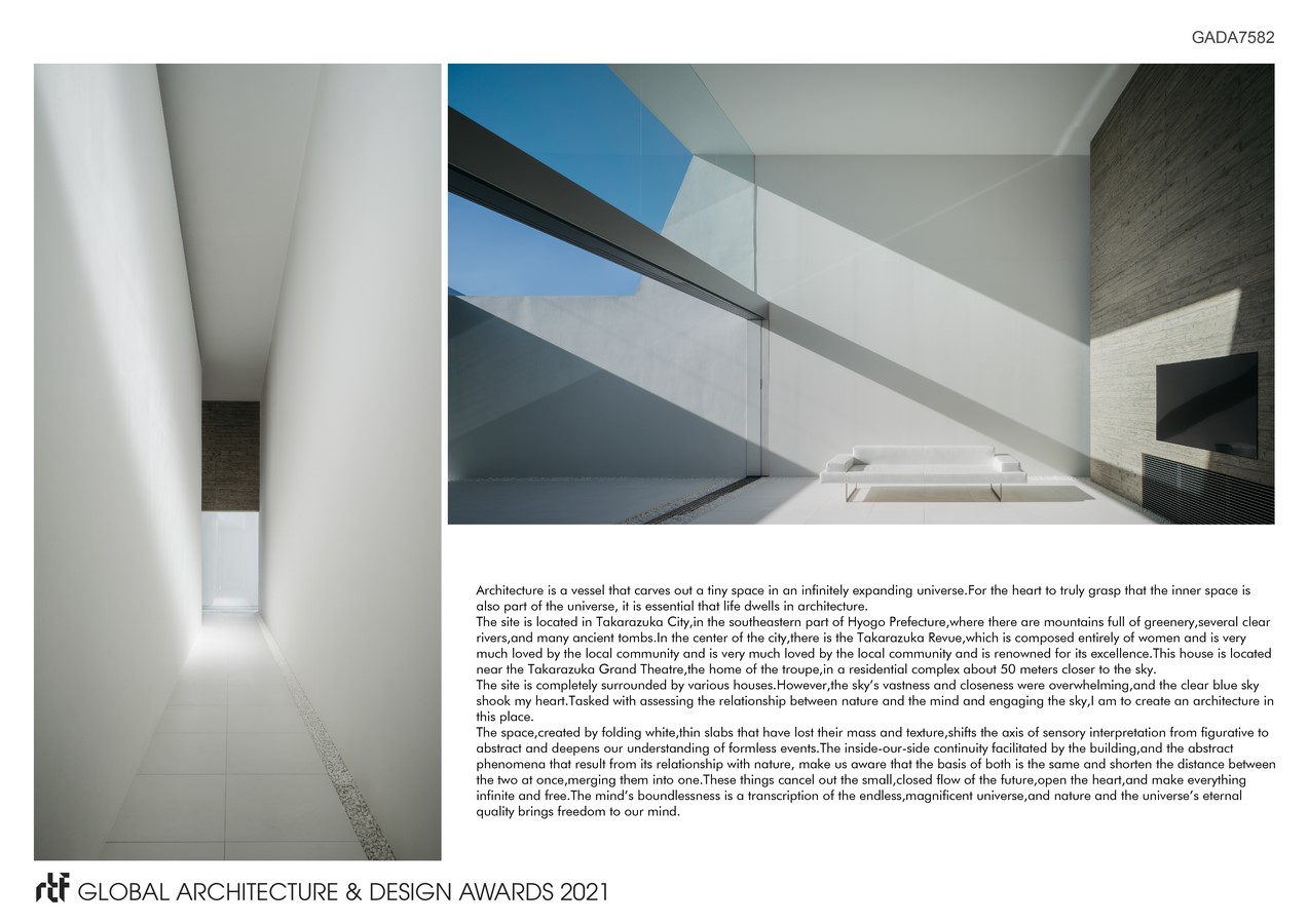 The site is located in Takarazuka City, in the southeastern part of Hyogo Prefecture,where there are mountains full of greenery, several clear rivers, and many ancient tombs. In the center of the city, there is the Takarazuka Revue, which is composed entirely of women and is very much loved by the local community and is very much loved by the local community and is renowned for its excellence. This house is located near the Takarazuka Grand Theatre, the home of the troupe, in a residential complex about 50 meters closer to the sky.