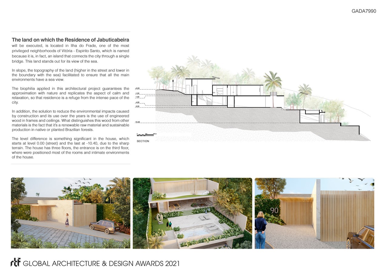 The land on which the Residence of Jabuticabeira will be executed, is located in Ilha do Frade, one of the most privileged neighborhoods of Vitória – Espirito Santo, which is named because it is, in fact, an island that connects the city through a single bridge. This land stands out for its view of the sea. In slope, the topography of the land (higher in the street and lower in the boundary with the sea) facilitated to ensure that all the main environments have a sea view.