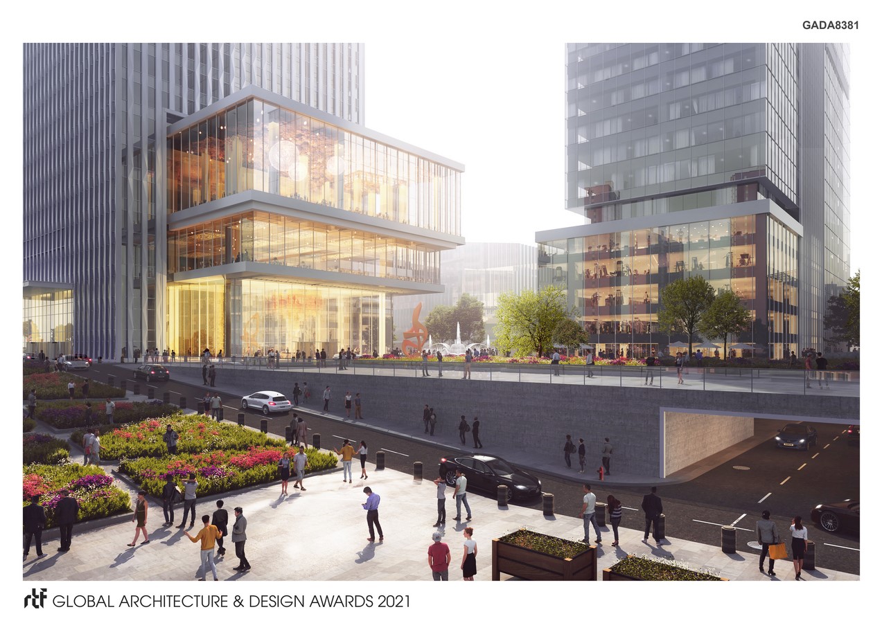 The site level of Phase 2 is the same as the highest high level of the civic roads, but it is about 8m higher than Phase. The site planning and design tries to make use of the height difference, adding retail space at Phase 1 height level, and meanwhile designing ramp locations following the height difference. For master planning of the site, it creates 3 major zones (Public, Buffer and Private) that relates to the drop-off space of each program.