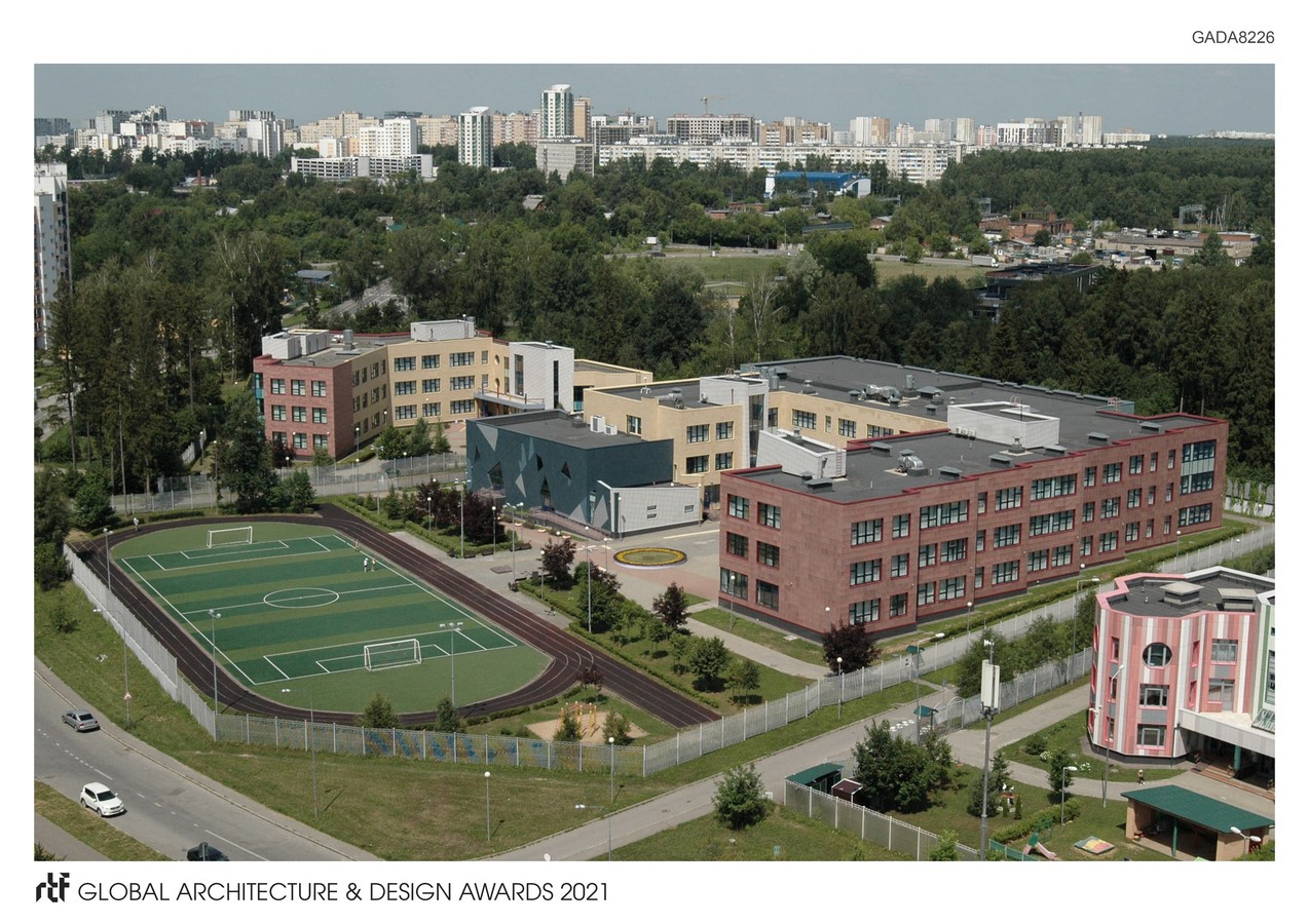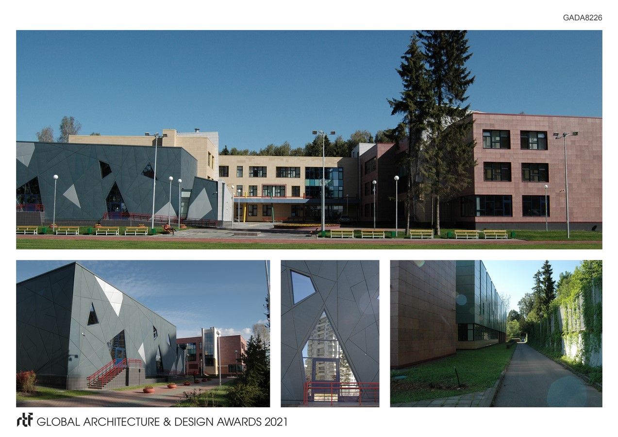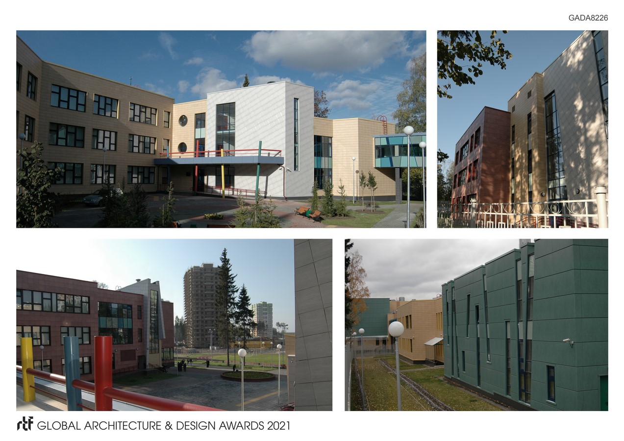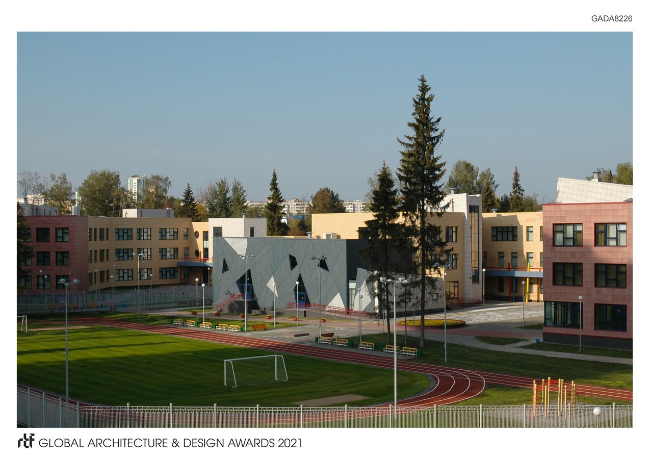 The junior school is located in the new 23rd microdistrict of Zelenograd, called Zeleny Bor. The construction of the facility was carried out according to an individual project on a site area of 0.61 hectares. Building area – 4400 m2. The microdistrict is successfully integrated into the infrastructure of Zelenograd, provided with public transport, including a regular bus route to the nearest metro station – Pyatnitskoe shosse. The block of primary grades contains: classrooms for elementary grades, bedrooms, rooms for study in circles and games, a gym with all the necessary equipment and supplies, a locker room, bathrooms and shower rooms. Common premises of the primary school block and the school: food block, medical rooms, administration rooms are interconnected at the level of the 2nd floor by an overground warm gallery.