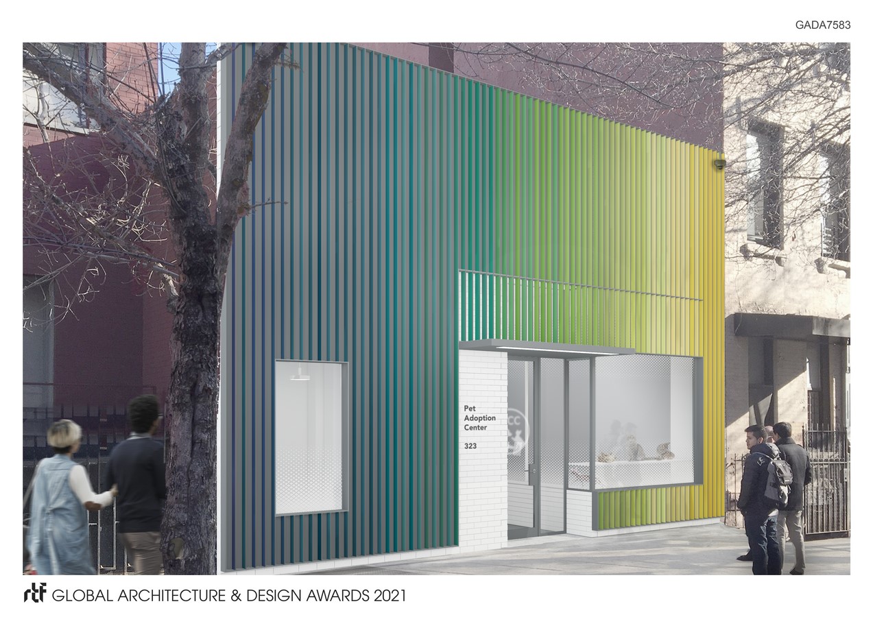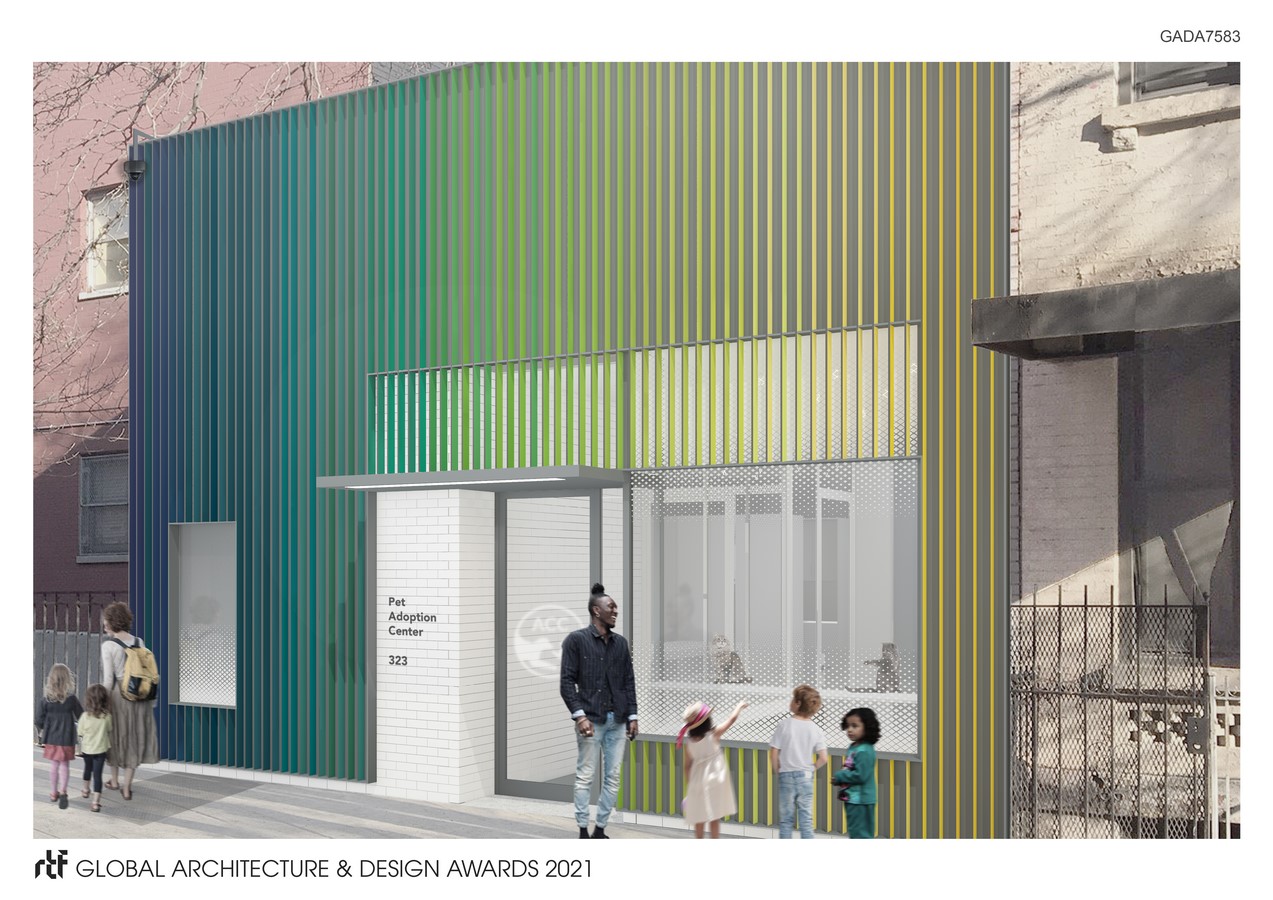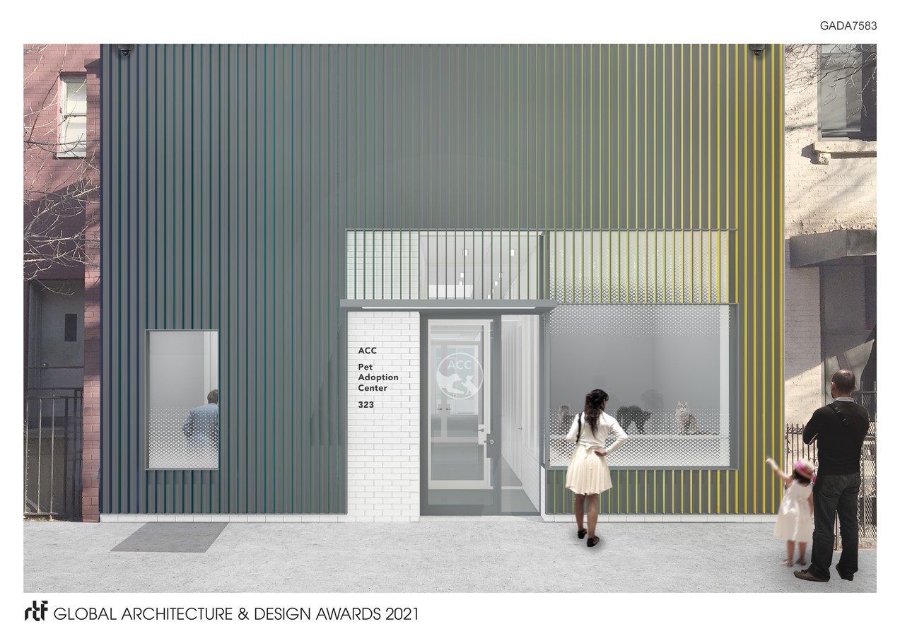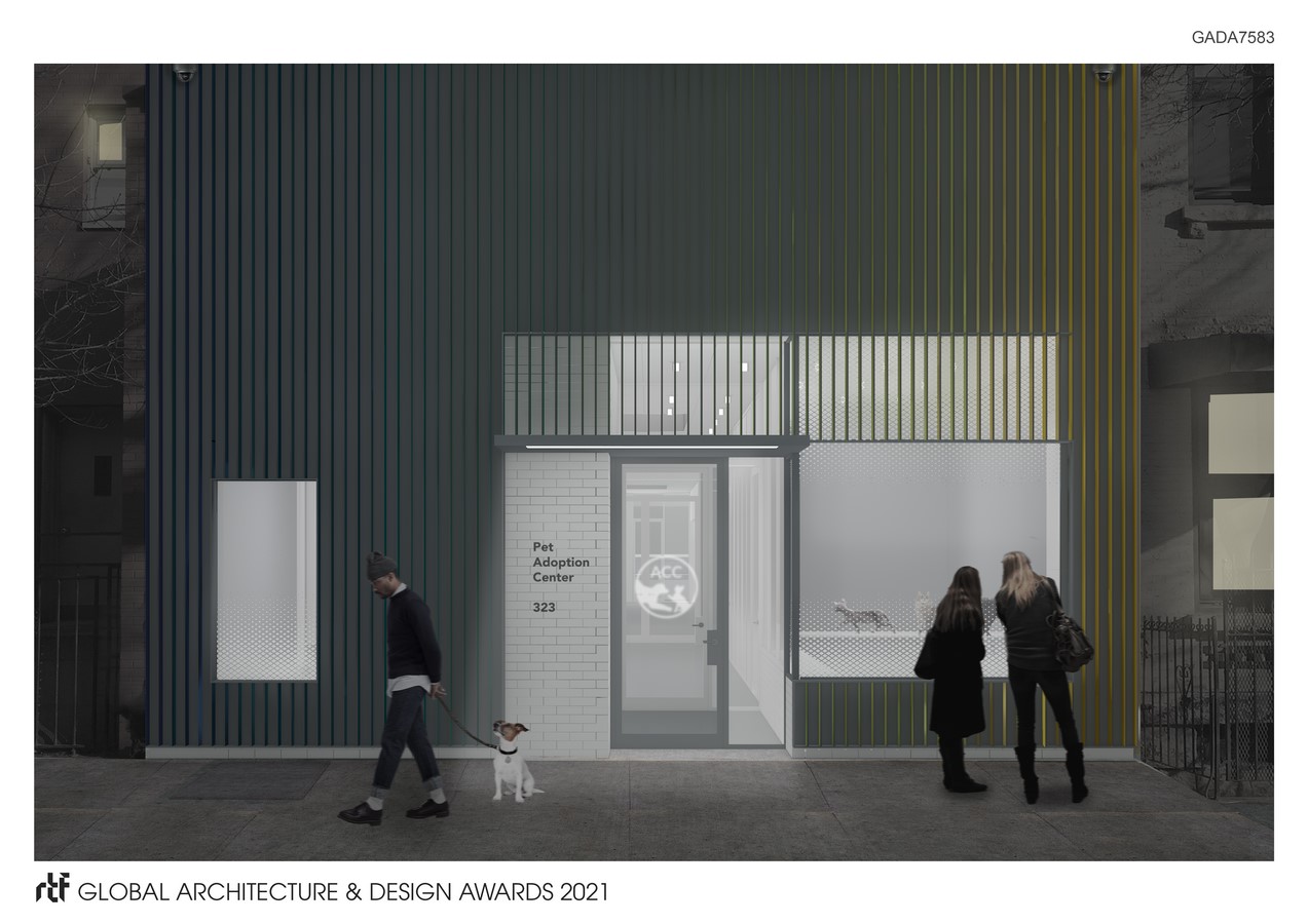 In New York City, animal care involves a range of services, from saving wild animals who find their way into its parks to euthanasia, animal safety, and pet adoption. For this public-funded center in East Harlem, overlapping requirements for more demanding tasks with a welcoming front door for families became untenable. The solution is to renovate an underutilized garage on the premises to create a friendly place for pet adoption (dogs, cats, rabbits). In doing so, we hope to increase adoptions, thus saving many more animals and bringing pleasure to our community. The new facility will also help revitalize the neighborhood with its active street presence. Repurposing the 1930s garage also preserves Harlem’s residential scale as new high-rise construction reduces the amount of daylight and the feeling of openness.