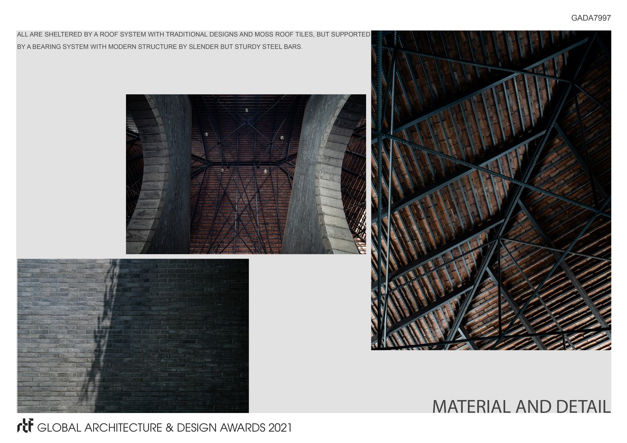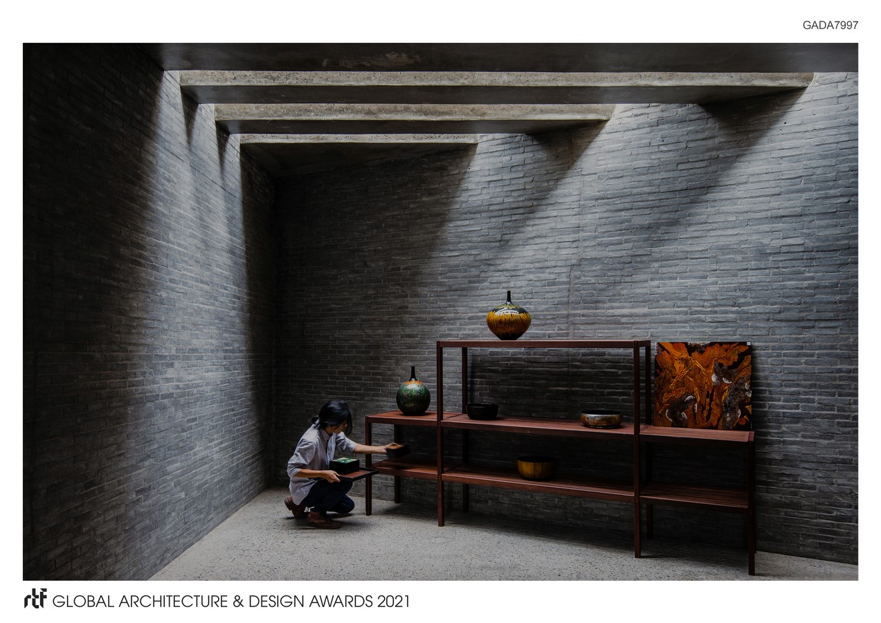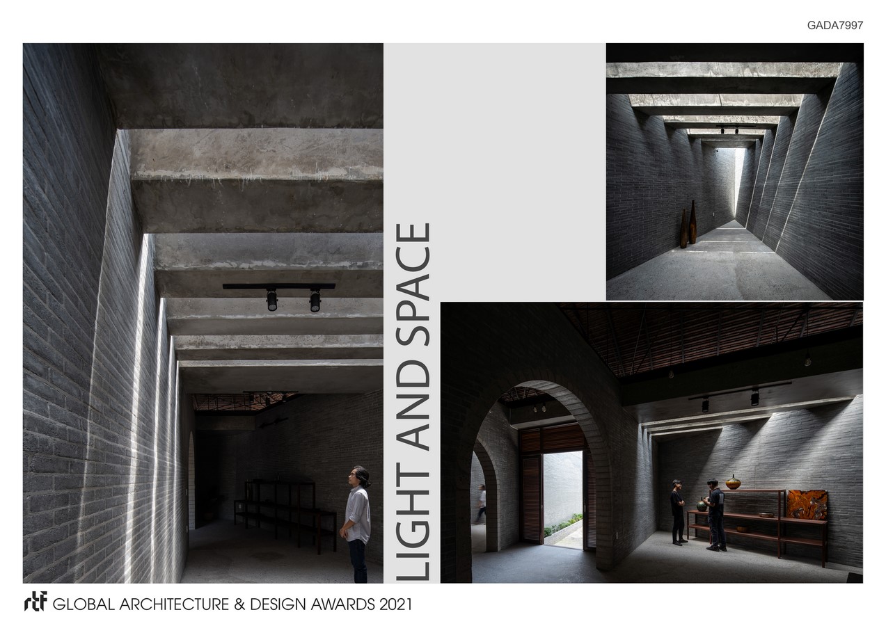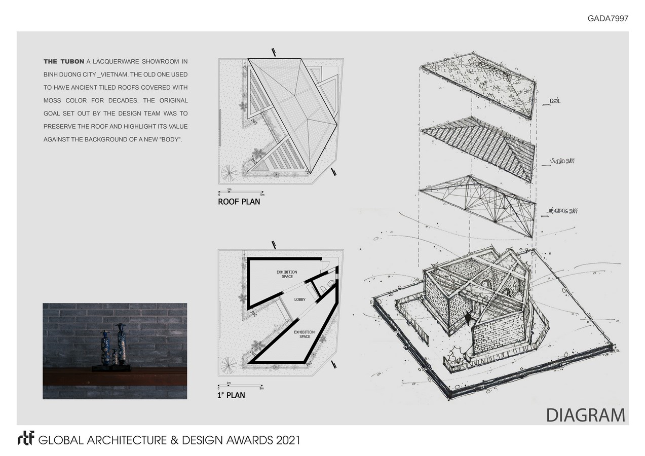 This is a LacquerWare showroom in Binh Duong City _Vietnam. The old one used to have ancient tiled roofs covered with moss color for decades. The original goal set out by the design team was to preserve the roof and highlight its value against the background of a new “body”.