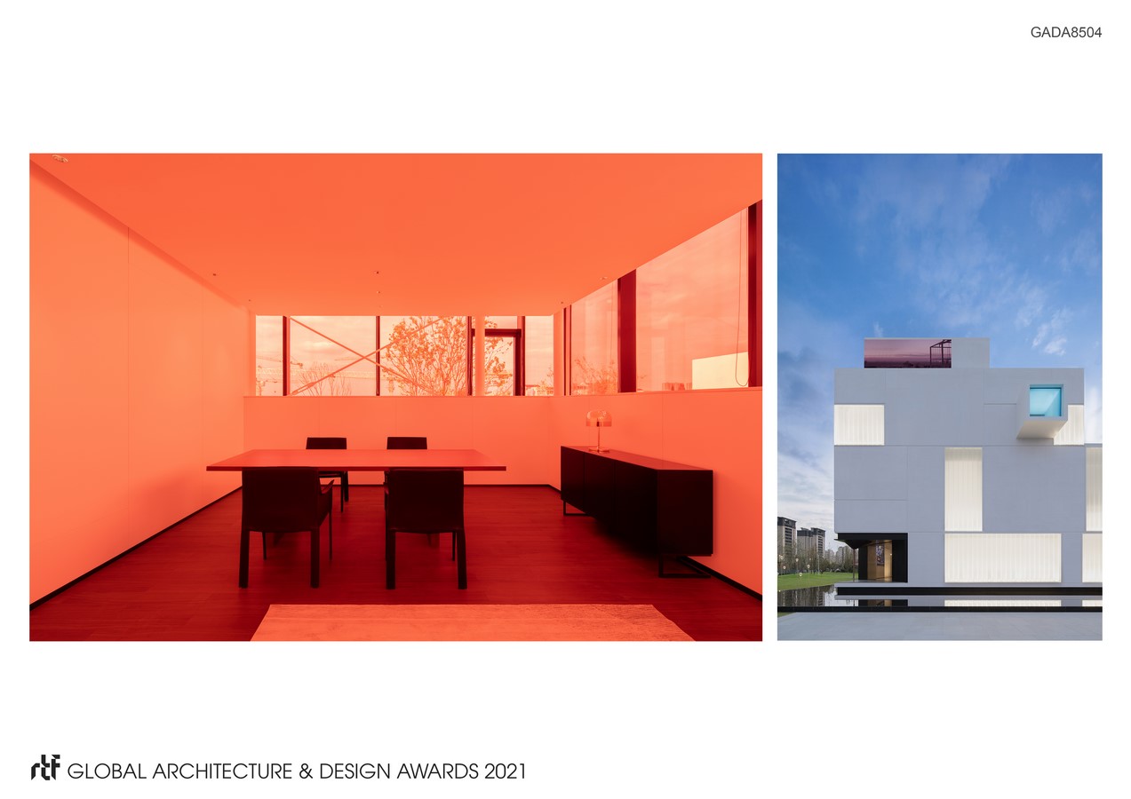 An undulations green park is built between building and city. In this park, different sense changes with the seasons. It invites people to visit with open posture. Stroll, jogging, take photos and kid’s fun, all of this bring vigorous vitality to the surrounding community. The original lawn and calm water make the sense of environment as paintings by Cézannes, which brings people happiness by escape from reality. As a new building of this area, to achieve the harmony with surroundings, the small volume building tries very hard to contact with outside world via different construction method. Plenty floor height and high-quality building material reflect the understanding of comfortable space and responsible attitude of the architect.