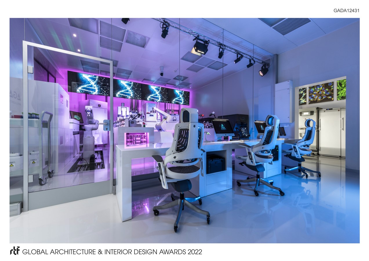 The planning paid attention to the laboratory space in which hi-end scientific instruments were placed. The result is a robotic state-of-the-art facility that looks both antique and futuristic.