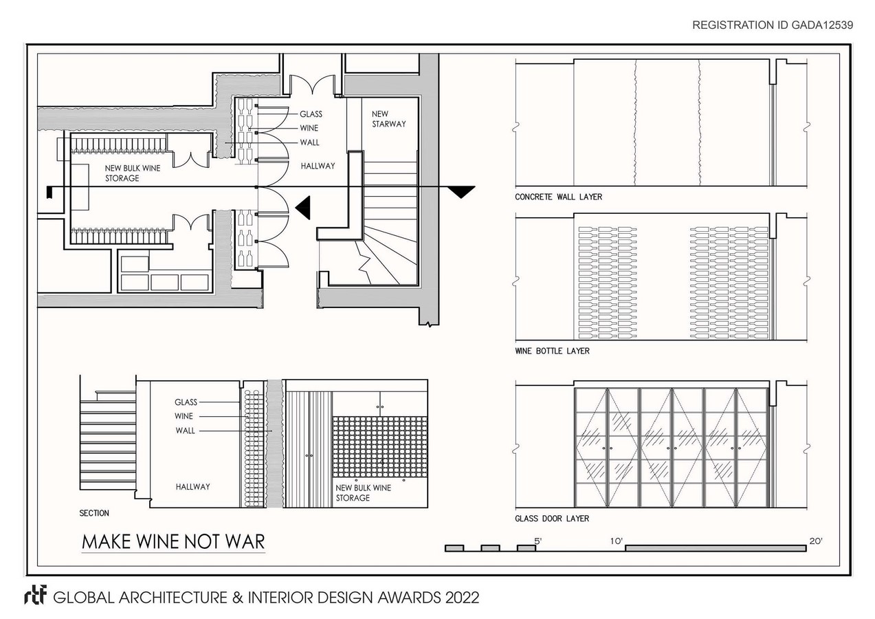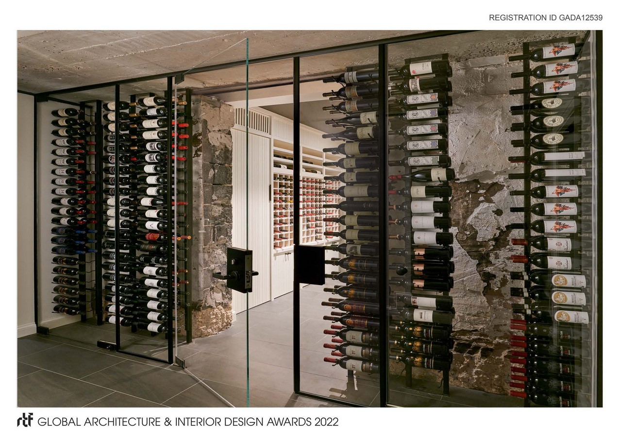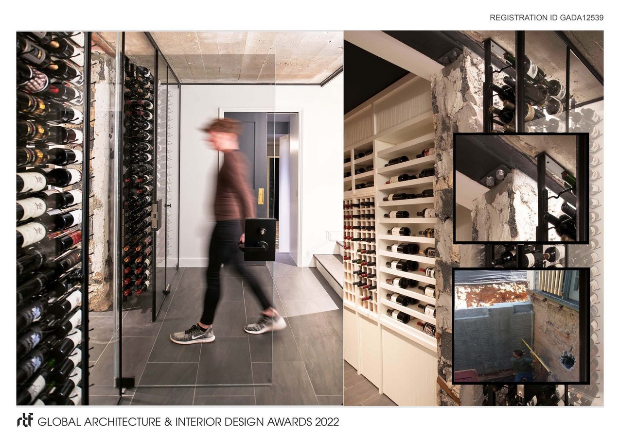 During the renovation of a home in Metro Washington DC, a discovery acts as an inflection point changing the direction of a design. Instead of planning then constructing, the deign process becomes one of immediate improvisation. Masked behind layers of plaster and blocking, a cellar was demolished to make way for stairs that would descend through what was expected to be traditional framing. Instead, a solid cast-in-place slab and a concrete encapsulation, thicker than some local engineered bridges, was discovered. Its location, situated on the end of the home and surrounded by concrete walls on all sides, suggested it was likely a shelter either during or in the wake of World War II. Although rare this was not a singular event. Similar spaces have been uncovered in this area over the years. The existing architectural plans instructed builders to demolish all interior walls and impose a slick, new wine room.